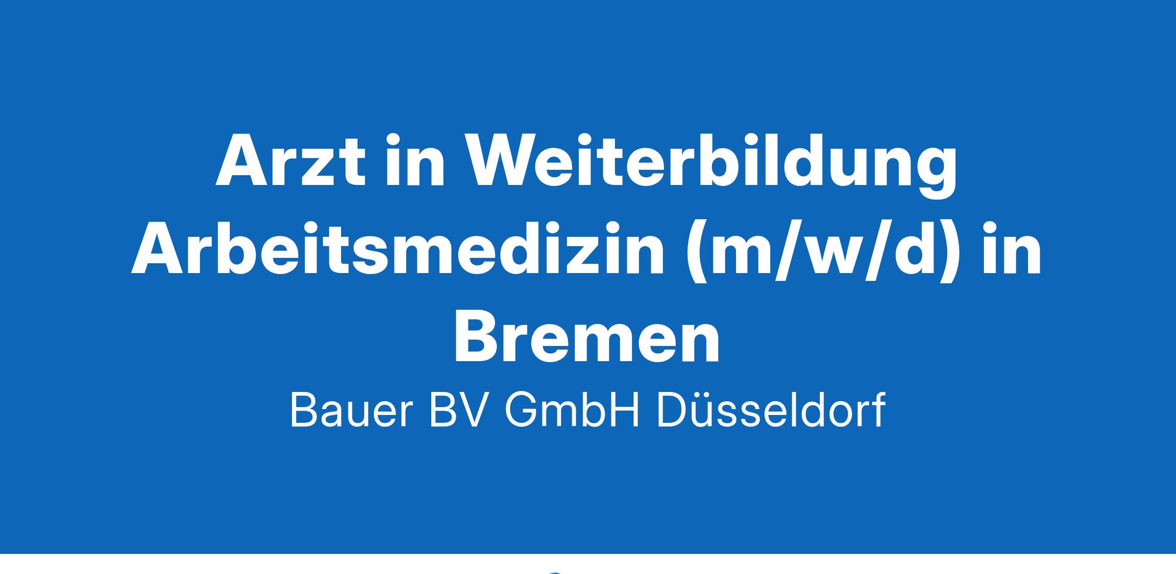 Anstellungsart(en): Teilzeit, VollzeitStarten Sie Ihre Karriere in der Arbeitsmedizin !Ihr neuer Arbeitsplatz:Unser Kunde zählt zu den führenden Experten im Bereich arbeitsmedizinischer Dienstleistungen, mit einem bundesweiten Netzwerk und einer herausragenden Expertise. Für den Standort Bremen suchen wir engagierte Assistenzärztinnen und Assistenzärzte (m/w/d), die ihre Weiterbildung zum Facharzt für Arbeitsmedizin (m/w/d) in einem dynamischen und unterstützenden Umfeld absolvieren möchten.Ihre Vorteile:Attraktive Ausbildungs- und KarrieremöglichkeitenAbwechslungsreiche TätigkeitAusschließlich präventive TätigkeitBetreuung und Beratung der Kunden zu arbeitsmedizinischen ThemenFlexible ArbeitszeitenKeine Nacht-, Schicht- oder WochenendarbeitWertschätzenden AtmosphäreFreundliches und engagiertes TeamAttraktive VergütungUnbefristete Festanstellung in Voll- oder TeilzeitIhr Profil:Approbierter Arzt (m/w/d)Mindestens 24 Monaten Erfahrung in den Gebieten der unmittelbaren PatientenversorgungSehr gute DeutschkenntnissePKW-FührerscheinIhr Ansprechpartner:Bauer B+V Personalberatung