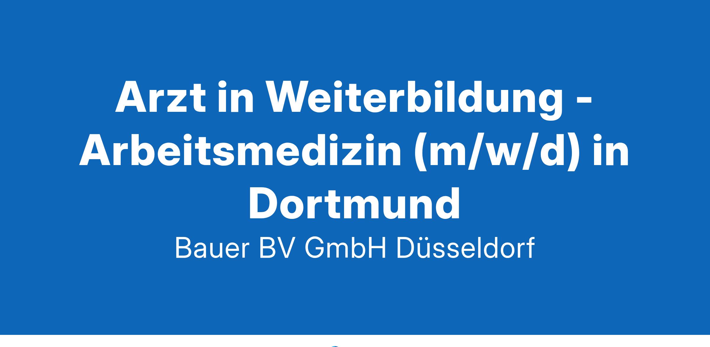 Anstellungsart(en): Teilzeit, VollzeitIhr neuer Arbeitsplatz:Unser Kunde ist ein bundesweit vertetener Anbieter im Bereich der Arbeitsmedizin und des betrieblichen GesundheitsmanagementsFür den Standort in Dortmund suchen wir zum nächstmöglichen Zeitpunkt einen Arzt in Weiterbildung (m/w/d) für Arbeitsmedizin.Ihre Vorteile:Komplette Ausbildung zum Facharzt für Arbeitsmedizin (m/w/d)Individuelle EntwicklungsmöglichkeitenGeregelte Arbeitszeiten ohne Nacht- und WochenenddiensteAttraktiver Verdienst inkl. Dienstwagen mit PrivatnutzungUnbefristete Festanstellung in Voll- oder TeilzeitIhr Profil:Deutsche ApprobationMind. 24 Monate absolvierte Weiterbildungszeit in der unmittelbaren PatientenversorgungSprachkenntnisse auf C1-NiveauFührerscheinIhr Ansprechpartner:Bauer B+V Personalberatung