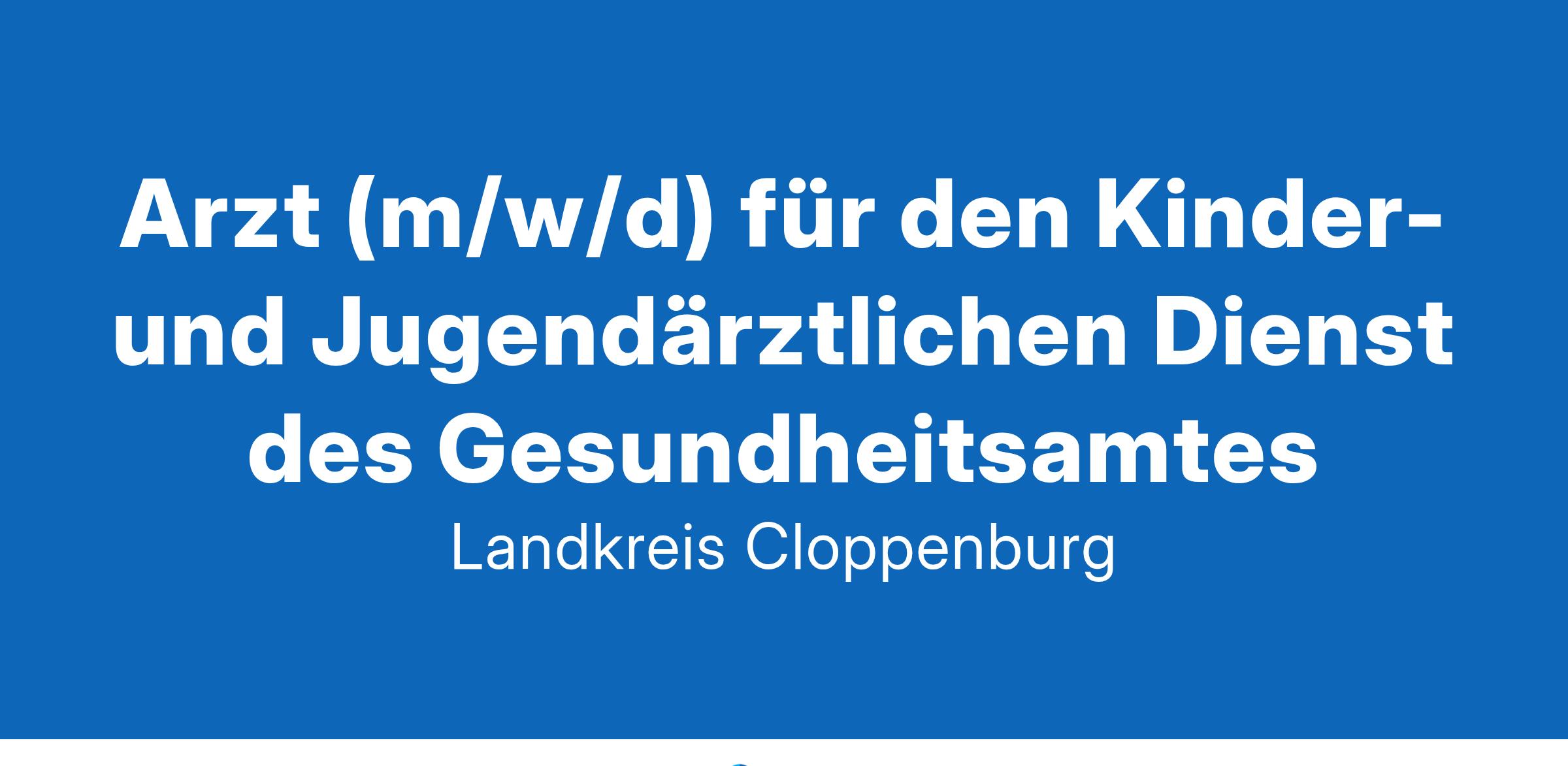 Der Landkreis Cloppenburg sucht für den Kinder- und Jugendärztlichen Dienst des Gesundheitsamtes zum nächstmöglichen Zeitpunkt einen Arzt (m/w/d) für den Kinder- und Jugendärztlichen Dienst des Gesundheitsamtes Ihre Aufgaben: Wahrnehmung von kinder- und jugendärztlichen Untersuchungs- und Beratungsaufgaben, insbesondere: Durchführung von Einschulungsuntersuchungen Ausführung von Einzeluntersuchungen zur Feststellung von spezifischem Förderbedarf bei behinderten oder von Behinderung bedrohten Kindern Durchführung von Impfkampagnen sonstige Projekte zur Gesundheitsförderung und –prävention im Landkreis Cloppenburg Unser Angebot: verantwortungsvolle und abwechslungsreiche Tätigkeit in einem unbefristeten Beschäftigungsverhältnis durchschnittliche wöchentliche Arbeitszeit bis zu 19,5 Stunden Beschäftigung nach den Bestimmungen des Tarifvertrags für den öffentlichen Dienst (TVöD) Eingruppierung je nach persönlicher Qualifikation bis in die Entgeltgruppe 15 TVöD Erwerb einer Zusatzversorgung für den öffentlichen Dienst (VBL), Jahressonderzahlung nach TVöD sowie Teilnahme an der leistungsorientierten Bezahlung (LOB) gleitende Arbeitszeit anteilig Homeoffice möglich Förderung von internen und externen Fort- und Weiterbildungsmöglichkeiten, hauseigene Kantine, Betriebskindertagesstätte für Kinder bis zu drei Jahren, Möglichkeit des Fahrradleasings, umfangreiches Gesundheitsmanagement (Hansefit, Betriebssportgruppen, Yoga in der Mittagspause, (kostenpflichtige) Massageangebote, u.v.m.) Ihr Profil: abgeschlossene Weiterbildung zum Facharzt (m/w/d) Kinderheilkunde bzw. Kinder- und Jugendmedizin oder Kinder- und Jugendpsychiatrie oder Approbation als Arzt (m/w/d) mit mind. 2-jähriger klinischer Erfahrung aufgeschlossene, engagierte, teamfähige und belastbare Persönlichkeit mit Verantwortungsbewusstsein Besitz einer gültigen Fahrerlaubnis der Klasse B Bereitschaft zum Einsatz des eigenen PKW für dienstliche Zwecke gegen eine Fahrtkostenerstattung nach der Niedersächsischen Reisekostenverordnung gute Deutschkenntnisse in Wort und Schrift (mindestens Sprachniveau B2) Durch den Beitritt zur Charta der Vielfalt möchte der Landkreis Cloppenburg die Anerkennung, Wertschätzung und Einbeziehung von Vielfalt in der Verwaltung voranbringen und ein Arbeitsumfeld schaffen, das frei von Vorurteilen ist. Alle Mitarbeitenden werden unabhängig von geschlechtlicher Identität, Nationalität, ethnischer Herkunft, Religion oder Weltanschauung, Behinderung, Alter, sexueller Orientierung oder Identität wertgeschätzt. Interessiert? Wir freuen uns auf Ihre aussagekräftige Bewerbung bis spätestens zum 16.02.2025. Ihre Bewerbungsunterlagen einschließlich der erforderlichen Qualifikationsnachweise (u.a. Ausbildungs- und Prüfungszeugnisse) reichen Sie bitte über dieses Online-Bewerbungsportal ein. Für Fragen und Auskünfte zur Stelle sprechen Sie gern Frau Dr. Lamping an. Sie erreichen sie unter Tel.: 04471/15-659 bzw. E-Mail: b.lamping[AT]lkclp.de. Wenn Sie Fragen zum Auswahlverfahren haben, sprechen Sie gern Frau Schnieders an. Sie erreichen sie telefonisch unter 04471/15-822. Hinweise zum Datenschutz: Die Erhebung, Verarbeitung und Nutzung Ihrer personenbezogenen Daten im Rahmen Ihrer Bewerbung erfolgt gemäß den einschlägigen Datenschutzvorschriften. Nähere Informationen zum Datenschutz erhalten Sie auf unserer Internetseite www.lkclp.de. Landkreis Cloppenburg 10 - Amt für Zentrale Aufgaben und Finanzen Postfach 14 80 49644 Cloppenburg