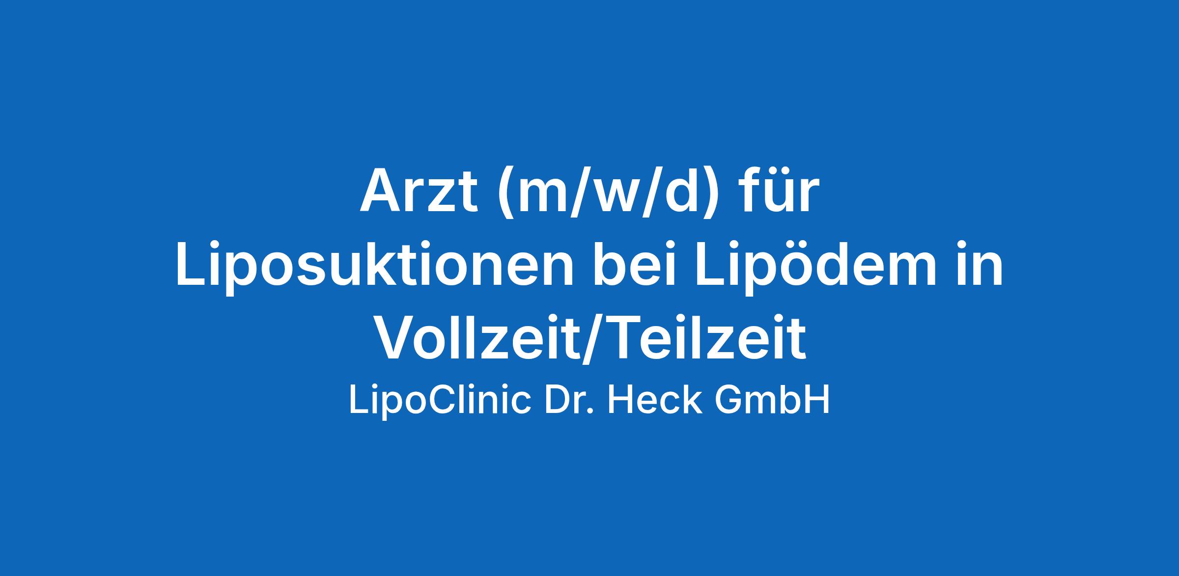 Wir suchen Sie als Arzt (m/w/d) für Liposuktionen bei Lipödem für die LipoClinic Dr. Heck an dem Standort in Frankfurt, Berlin.