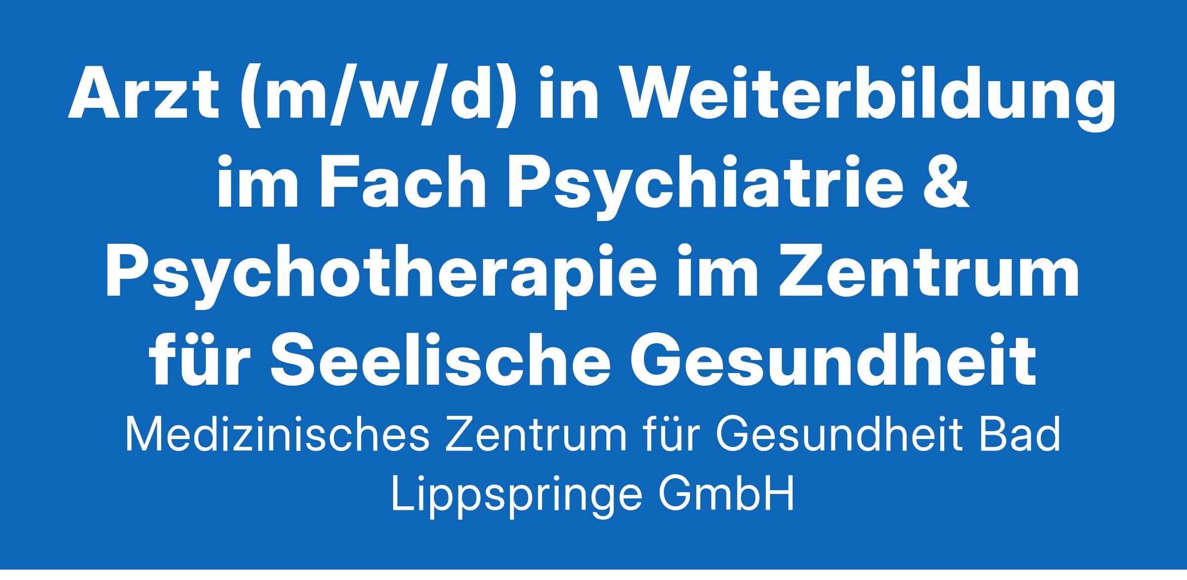 Gesucht wird zum nächstmöglichen Zeitpunkt ein Arzt (m/w/d) in Weiterbildung im Fach Psychiatrie & Psychotherapie im Zentrum für Seelische Gesundheit.