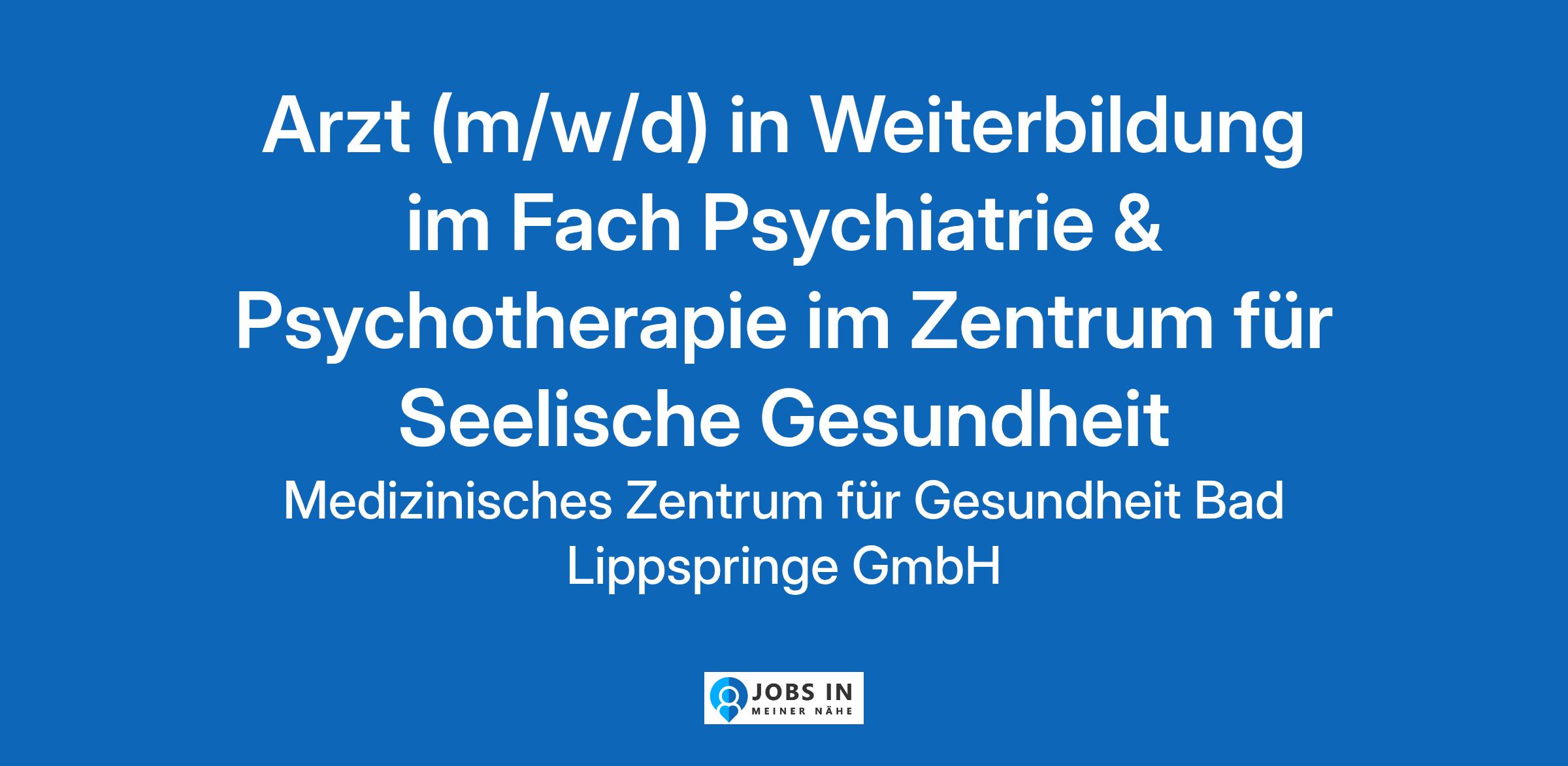 Gesucht wird zum nächstmöglichen Zeitpunkt ein Arzt (m/w/d) in Weiterbildung im Fach Psychiatrie & Psychotherapie im Zentrum für Seelische Gesundheit.