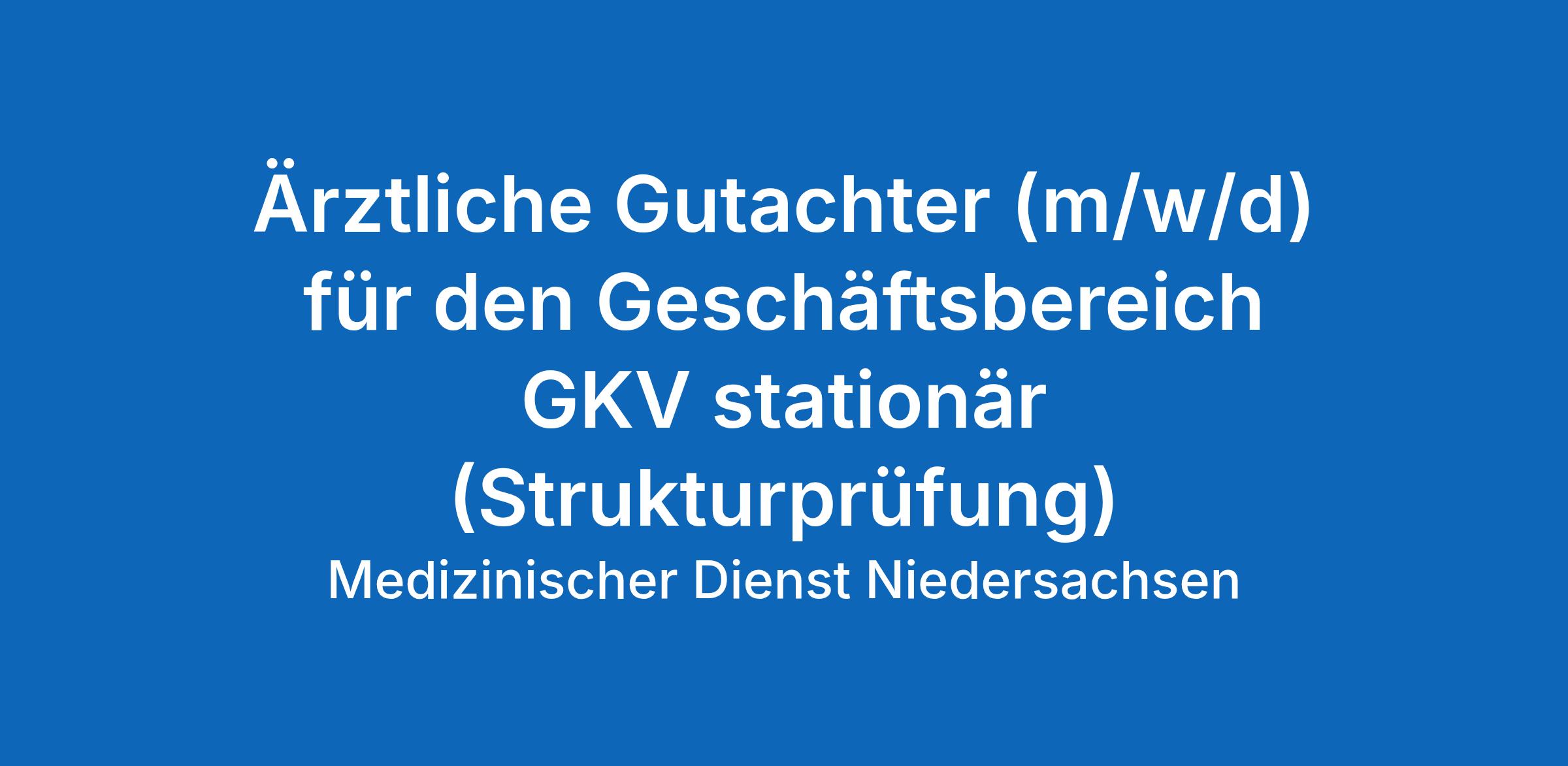 Gutes tun im gesetzlichen Auftrag: Als unabhängiger Gutachterdienst unterstützen und beraten wir, der Medizinische Dienst Niedersachsen, die gesetzliche Krankenversicherung sowie die soziale Pflegeversicherung in allen medizinischen und pflegerischen Fragen. Ob die Qualität von Pflegeeinrichtungen bzw. Pflegediensten geprüft werden soll, Behandlungsfehler vermutet werden oder Fragen zu neuen Behandlungsmethoden unabhängig bewertet werden sollen: Wir sind da. Für über 7,1 Millionen Versicherte in Niedersachsen. Mit rund 1.300 Kolleginnen und Kollegen an 12 Standorten. Erleben Sie eine Arbeit, die sich lohnt – ganz im Sinne unseres Selbstverständnisses – Menschlich. Digital. Nachhaltig. Wir stellen ärztliche Gutachter/-innen im Team Strukturprüfungen aufgrund der uns mit dem am 12.12.2024 in Kraft getretenen Krankenhausversorgungsverbesserungsgesetz (KHVVG) neu übertragenen gesetzlichen Aufgaben ein.