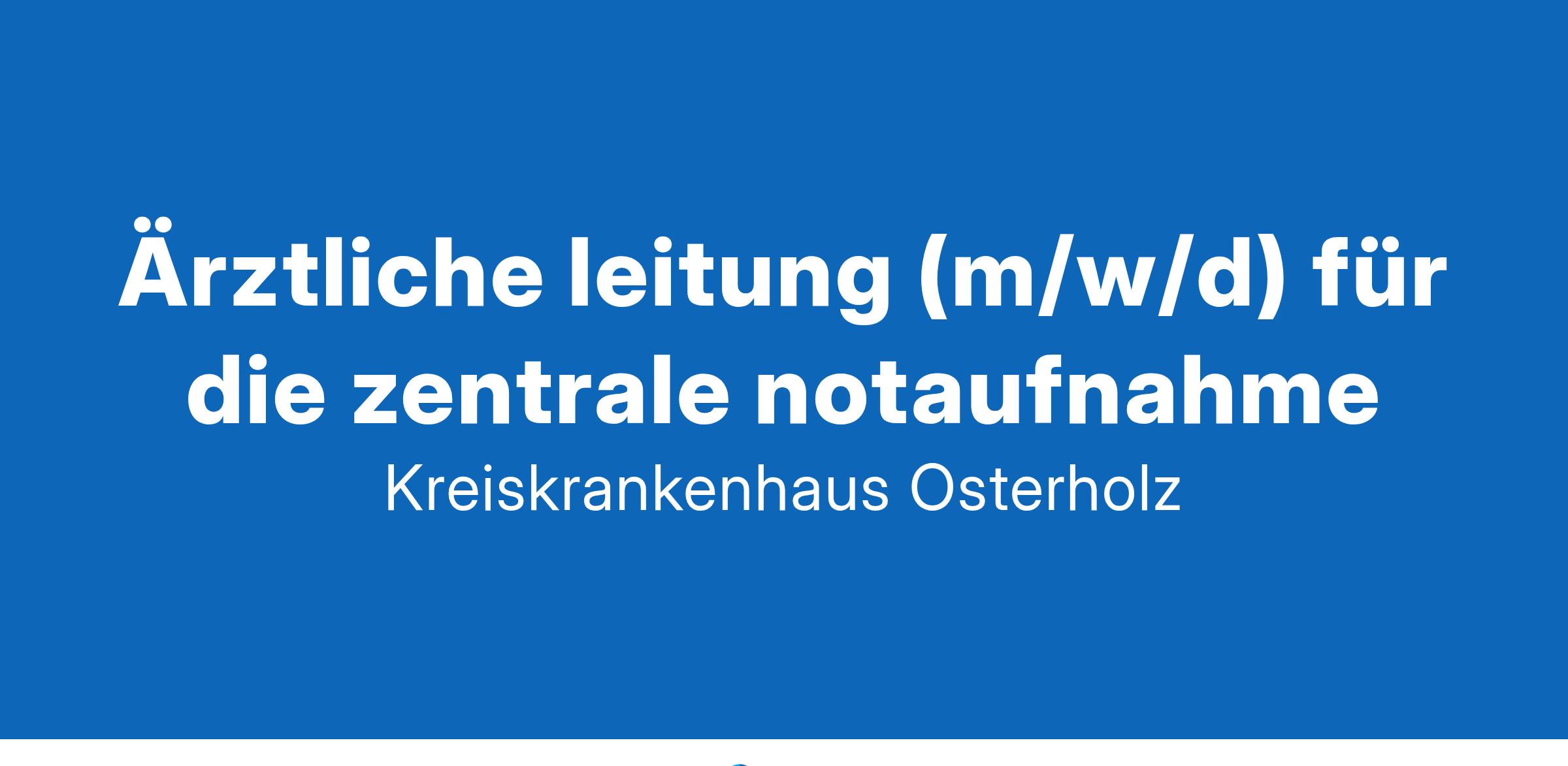 Kreiskrankenhaus Osterholz -- & Auml;rztliche Leitung (m/w/d) für die Zentrale NotaufnahmeDas Kreiskrankenhaus Osterholz ist ein modern ausgestattetes, wirtschaftlich gesundes Krankenhaus der Grund- und Regelversorgung in unmittelbarer Nähe zur Hansestadt Bremen mit den Abteilungen Innere Medizin, Chirurgie und Orthopädie, Gynäkologie und Geburtshilfe, Radiologie, Labor, Anästhesie und Intensivmedizin sowie einem Medizinischen Versorgungszentrum mit Praxen für Chirurgie, Orthopädie, Gastroenterologie, Kardiologie, Pädiatrie und Urologie. Unsere 490 Mitarbeitenden versorgen jährlich ca. 7.000 stationäre und 47.000 ambulante Patientinnen und Patienten.Wir suchen zum nächstmöglichen Zeitpunkt eine& Auml;rztliche Leitung (m/w/d) für die Zentrale NotaufnahmeDie Zentrale Notaufnahme (ZNA) ist an 365 Tagen im Jahr, jeweils 24 Stunden geöffnet, um akut Unfallverletzte sowie akut erkrankte Patienten zu versorgen, die im Rahmen eines Notfalls zu uns kommen.Ein hoch qualifiziertes, interdisziplinäres Team, bestehend aus & Auml;rzten und Pflegepersonal aus der Chirurgischen und Inneren Abteilung, steht für die schnellst- und bestmögliche Versorgung unserer Patienten bereit.In der ZNA werden alle Patienten nach der Schwere ihrer Erkrankung und nicht nach der Reihenfolge ihres Eintreffens behandelt. Hierfür setzen wir ein modernes Triage-System zur Ersteinschätzung ein.Wir bietenUnbefristete Beschäftigung in Voll- oder Teilzeit in einem wirtschaftlich gut aufgestellten HausVergütung nach TV-& Auml;rzte/VKA und zusätzliche AltersversorgungUmfangreiche in- und externe Fortbildungen mit KostenübernahmeGesundheitsmanagement, Firmenfitness, Fahrradleasing, krankenhauseigene CafeteriaKostenlose Parkplätze, überdachte Fahrradstellplätze mit E-Bike-LademöglichkeitWir wünschen unsAbgeschlossene Weiterbildung zum Facharzt in einem Gebiet der unmittelbaren Patientenversorgung mit langjähriger BerufserfahrungVorhandene Zusatz-Weiterbildung für Klinische Akut- und NotfallmedizinOrganisationsfähigkeit, Flexibilität, Teamfähigkeit und gute kommunikative FähigkeitenPatientenorientiertes und wirtschaftliches HandelnFür telefonische Fragen steht Ihnen Frau Sonström, Krankenhausleitung, gerne zur Verfügung. Sie können sie über das Sekretariat, Frau Reinsch, T , erreichen.Jetzt bewerbenKREISKRANKENHAUS OSTERHOLZAm Krankenhaus 4 · 27711 Osterholz-Scharmbeckwww.kreiskrankenhaus-osterholz.de