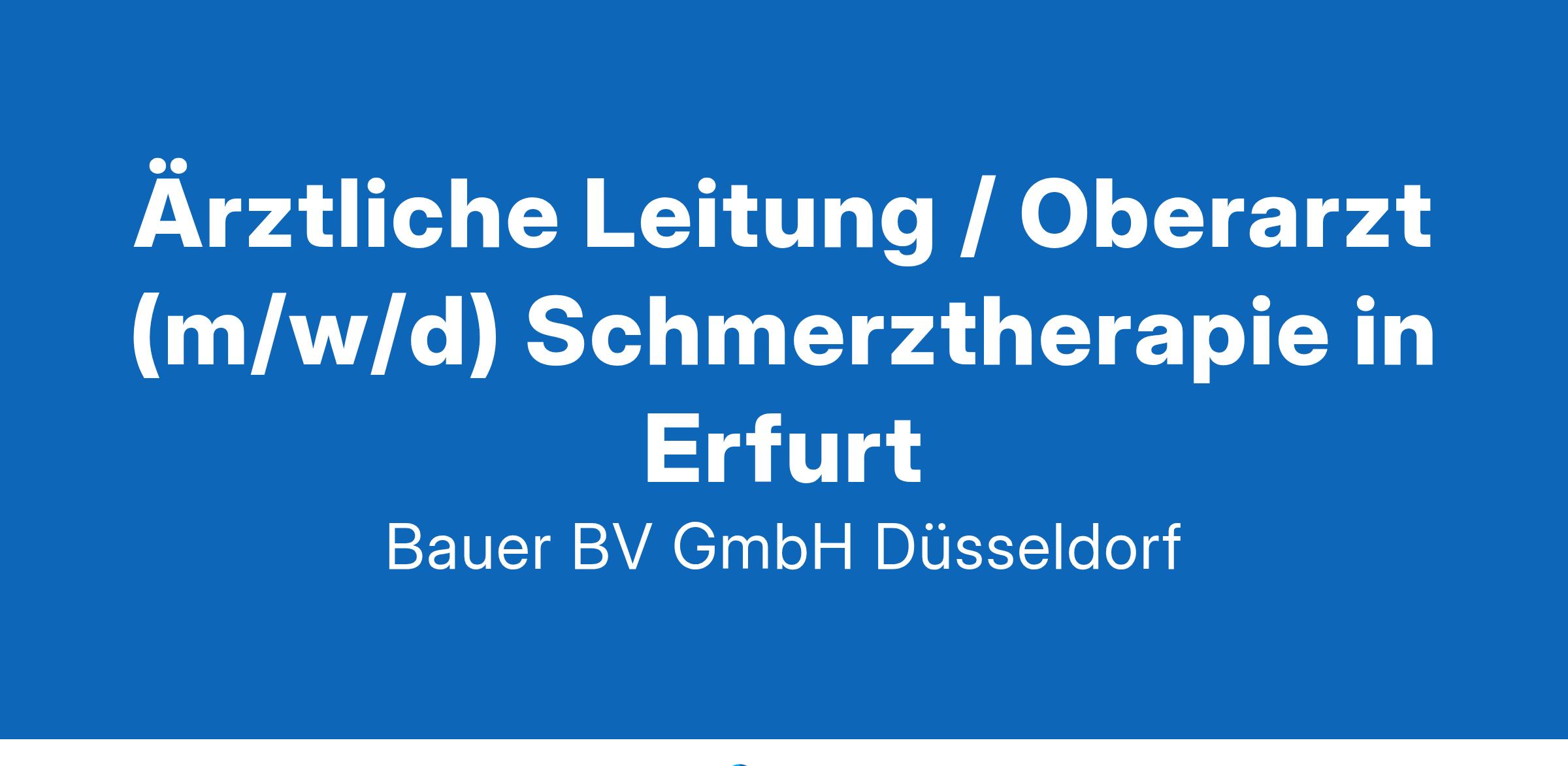 Anstellungsart(en): Teilzeit, VollzeitIhr neuer Arbeitsplatz:Akutkrankenhaus der Schwerpunktversorgung und akademisches Lehrkrankenhaus mit 600 Betten im Raum Erfurt. Die Schmerztherapie mit 10 Betten ist ein wichtiger Teil der Klinik für Anästhesie und Intensivmedizin und betreut eine Schmerzsprechstunde und einen Akut-Schmerzdienst. Für die stationäre Schmerztherapie suchen wir einen Oberarzt (w/m/d) in Leitungsfunktion.Ihre Vorteile:Attraktiver und verantwortungsvoller ArbeitsplatzAbwechslungsreiches AufgabengebietKonzeption und Durchführung der diagnostischen und therapeutischen Maßnahmen der multimodalen stationären SchmerztherapieFachliche Weiterentwicklung des BereichesKonsiliartätigkeitInterdisziplinäre Zusammenarbeit mit allen Abteilungen des HausesTätigkeit in der Palliativmedizin auf Wunsch möglichFreundliches und engagiertes TeamUnterstützung und Förderung von WeiterbildungenKeine Belastung durch DiensteAttraktive VergütungUnbefristete Festanstellung mit PerspektiveIhr Profil:Facharzt (m/w/d) für Anästhesie, Innere Medizin oder ChirurgieZusatzbezeichnung Spezielle SchmerztherapieFachliche Expertise und erste FührungserfahrungEngagement und TeamfähigkeitIhr Ansprechpartner:Bauer B+V Personalberatung