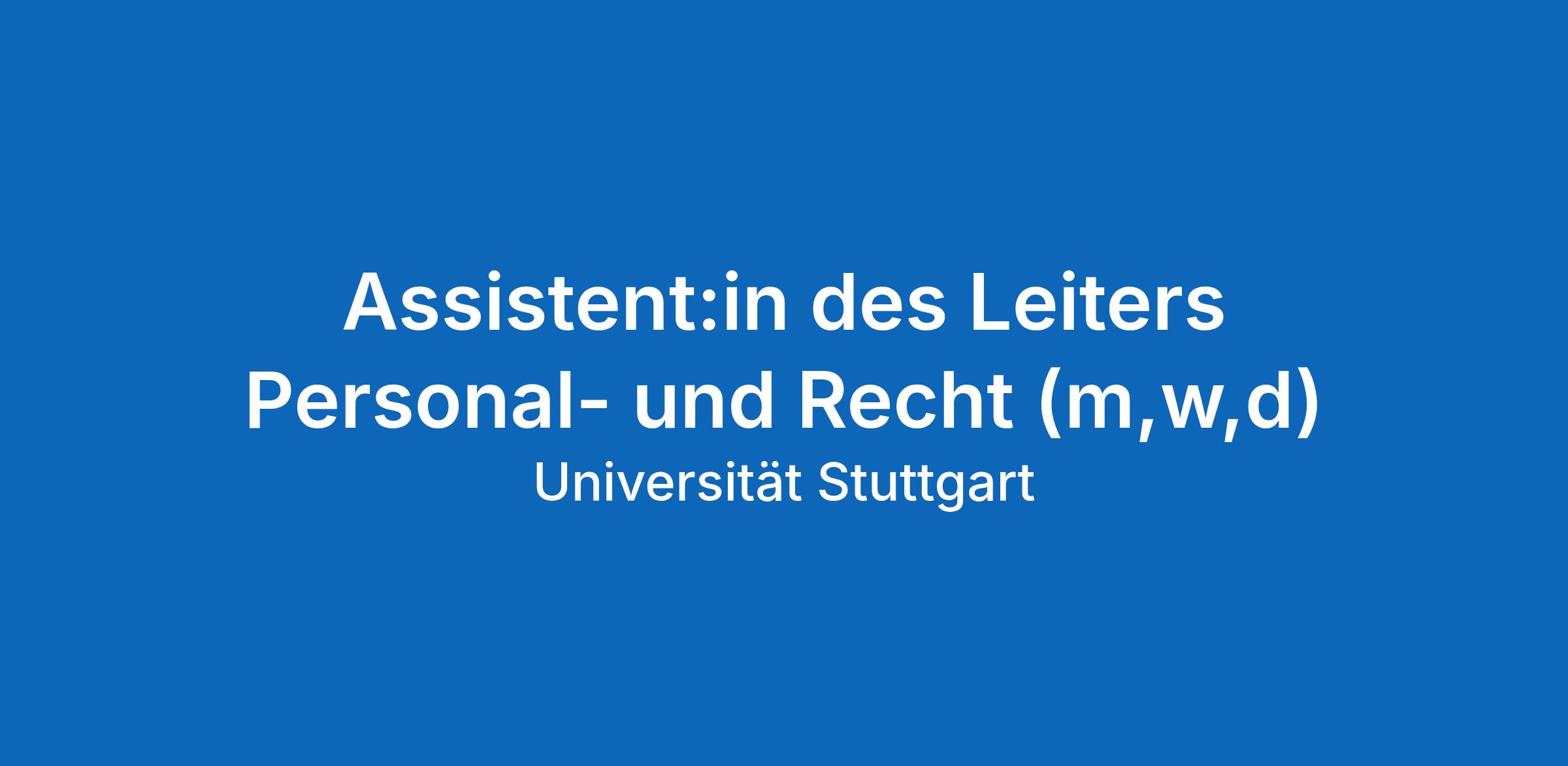 Bitte senden Sie diese bis zum 20.04.2026 per E-Mail in einem PDF-Gesamtdokument an bewerbung.dez.personal@verwaltung.uni-stuttgart.de oder in schriftlicher Form an Universität Stuttgart, Stephan Bissinger, Leiter Personal und Recht, Keplerstraße 7, 70174 Stuttgart. Absolute Vertraulichkeit ist selbstverständlich.