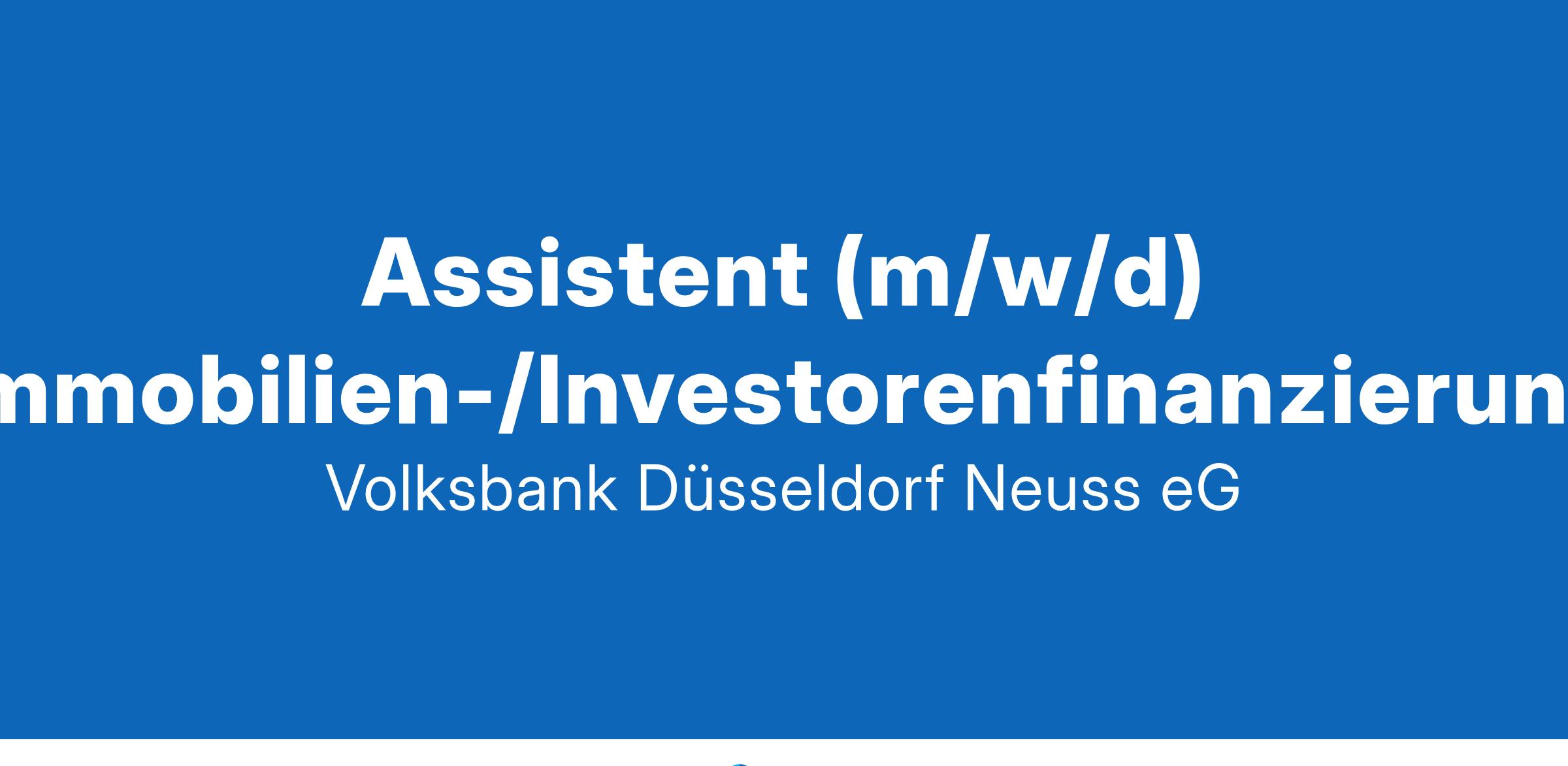 Stellenangebot Wachsen Sie mit uns und unterstützen Sie uns als Assistent (m/w/d) Immobilien-/Investorenfinanzierung Wir wachsen gegen den Trend! Wir, die Volksbank Düsseldorf Neuss eG, sind eine wachsende und zukunftsorientierte Volksbank mit einem erfolgreichen Filialnetz in der Landeshauptstadt Düsseldorf, in Ratingen und im Rhein-Kreis Neuss. Die Bilanzsumme beträgt rund 2,0 Mrd. Euro. Ihre Aufgaben: Sie unterstützen die Abteilung Immobilien-/Investorenfinanzierung in allen administrativen und organisatorischen Aufgaben und sind für die Planung und Koordination der Termine verantwortlich Sie bearbeiten zeitnah die täglich anfallende Korrespondenz und koordinieren die Wiedervorlagen Sie bereiten Kundenbesuche vor und nach, arbeiten Kundenunterlagen auf und sind für die Erstellung von Präsentationen verantwortlich Sie nehmen Telefonate unserer Kunden freundlich entgegen und sorgen für eine zeit- und sachgerechte Bearbeitung aller Kundenanfragen Sie nutzen den telefonischen Kontakt für die aktive Kundenansprache und leisten damit Ihren Beitrag zum Abteilungserfolg Sie sind für die Eingabe und Pflege von systemrelevanten Daten verantwortlich Sie übernehmen die Servicebetreuung der Kunden in diesem Segment Sie arbeiten eng mit den anderen Vertriebseinheiten zusammen Ihr Profil: Sie verfügen über eine Bankausbildung oder über einen vergleichbaren Abschluss Sie besitzen gute Kenntnisse im gewerblichen Kreditgeschäft und im Zahlungsverkehr Sie haben bereits Erfahrungen in einer Bank, idealerweise im Genossenschaftssektor, gesammelt Sie sind sicher im Umgang mit Microsoft Office Sie sind im Umgang mit Kunden flexibel und können sich schnell auf verschiedene Kundentypen und Situationen einstellen Sie telefonieren gerne und verfügen über einen sehr guten sprachlichen Ausdruck Sie erarbeiten sich bei Bedarf Fachwissen zu speziellen Problemlösungen, die das Tagesgeschäft betreffen Sie haben Spaß am ergebnisorientierten Arbeiten im Team Sie sind freundlich, aufgeschlossen, zuverlässig und belastbar Sie verfügen über eine gute Selbstorganisation und können Wichtiges und Dringendes priorisieren Sie begegnen allem Neuen optimistisch und erleben berufliche Herausforderungen als Ansporn Wir bieten z. B.: Flexible Arbeitszeiten 30 Urlaubstage 13 Gehälter Jobradleasing Kostenlose Getränke Betriebliche Altersvorsorge Betriebliche Gesundheitsförderung Attraktive Sonderkonditionen Weitere Informationen zu unseren Benefits finden Sie unter: www.deine-volksbank.de/FutureWork Wenn wir Ihr Interesse geweckt haben, dann freuen wir uns auf Ihre Online-Bewerbung per Mail an Future-Work[AT]DeiNE-Volksbank.de oder über folgenden Link: www.deine-volksbank.de/assistenz_immobilienfinanzierung Oder senden Sie Ihre aussagefähige Bewerbung mit Angabe Ihrer Gehaltsvorstellung, Ihres frühestmöglichen Eintrittstermins und der Referenznummer YF-17821 an: Volksbank Düsseldorf Neuss eG