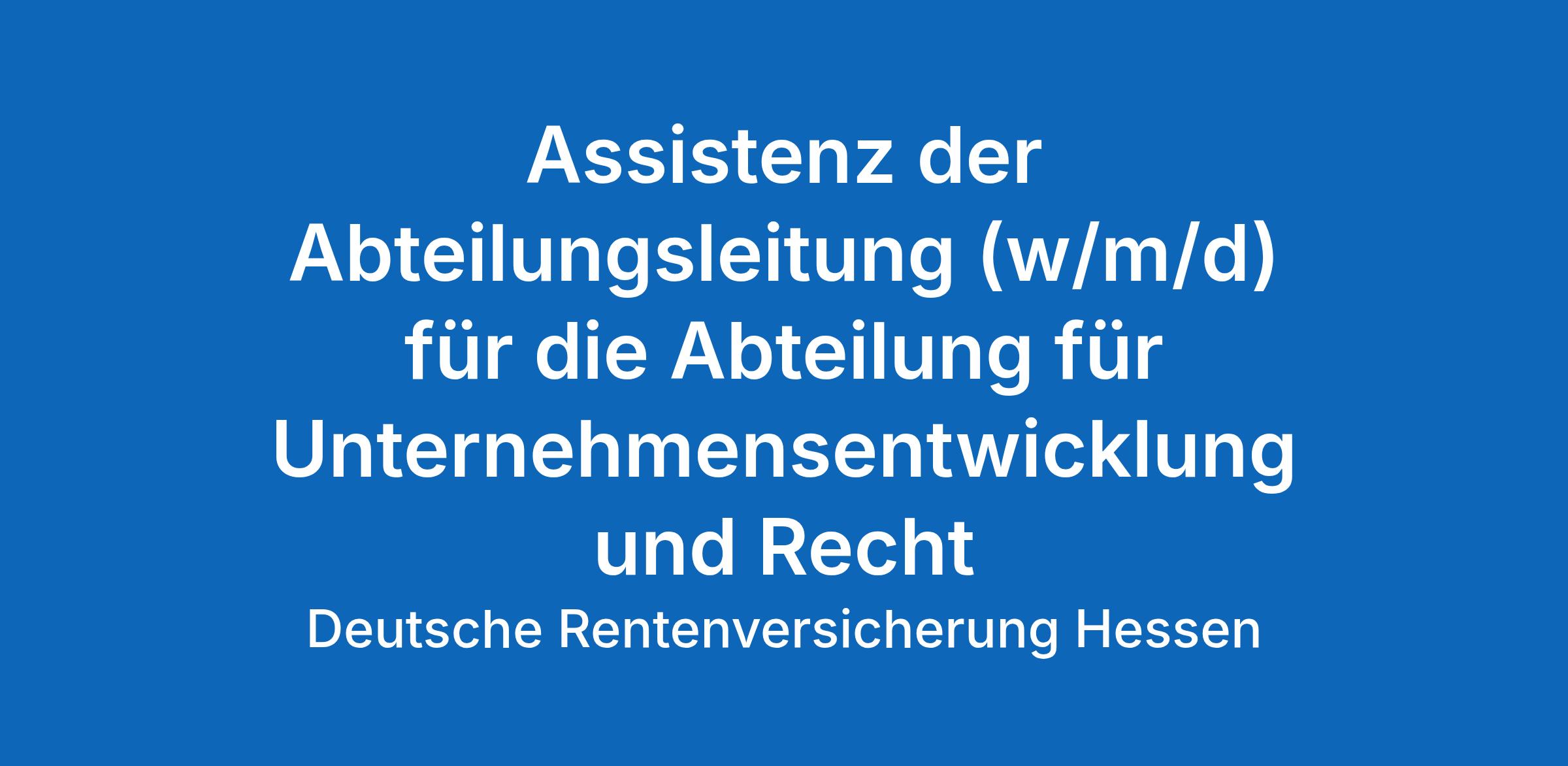 Die Deutsche Rentenversicherung Hessen sucht für Ihre Abteilung Unternehmensentwicklung und Recht zum nächstmöglichen Zeitpunkt eine