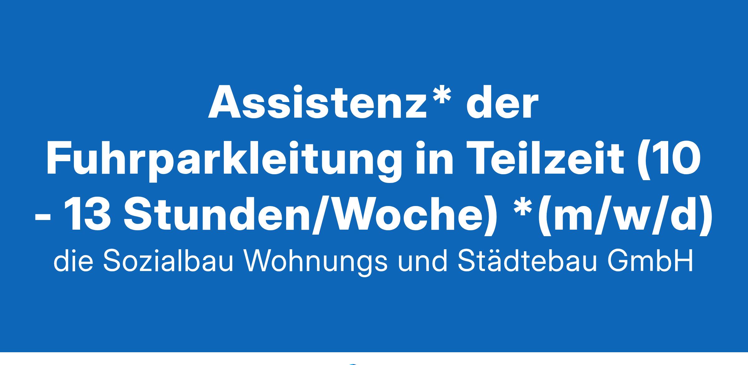 in Teilzeit (10-13 Stunden/Woche) die Sozialbau – das Wohnungs- und Städtebauunternehmen der Stadt Kempten im Allgäu Wir bieten flexible Arbeitszeiten Möglichkeit zum Homeoffice Urlaubs- und Weihnachtsgeld sowie Bonuszahlungen vielfältige Benefits (Fitnesszuschuss, Radleasing, Fahrtkostenzuschuss, ...) Aufgabengebiet Fuhrparkverwaltung und Ersatzbeschaffung von PKW, leichten Nutzfahrzeugen und Kommunalmaschinen Zusammenarbeit mit der hausinternen Werkstatt Sie bieten kaufmännische Ausbildung mit Berufserfahrung Führerschein der Klasse B/3 Bewerbung bitte an