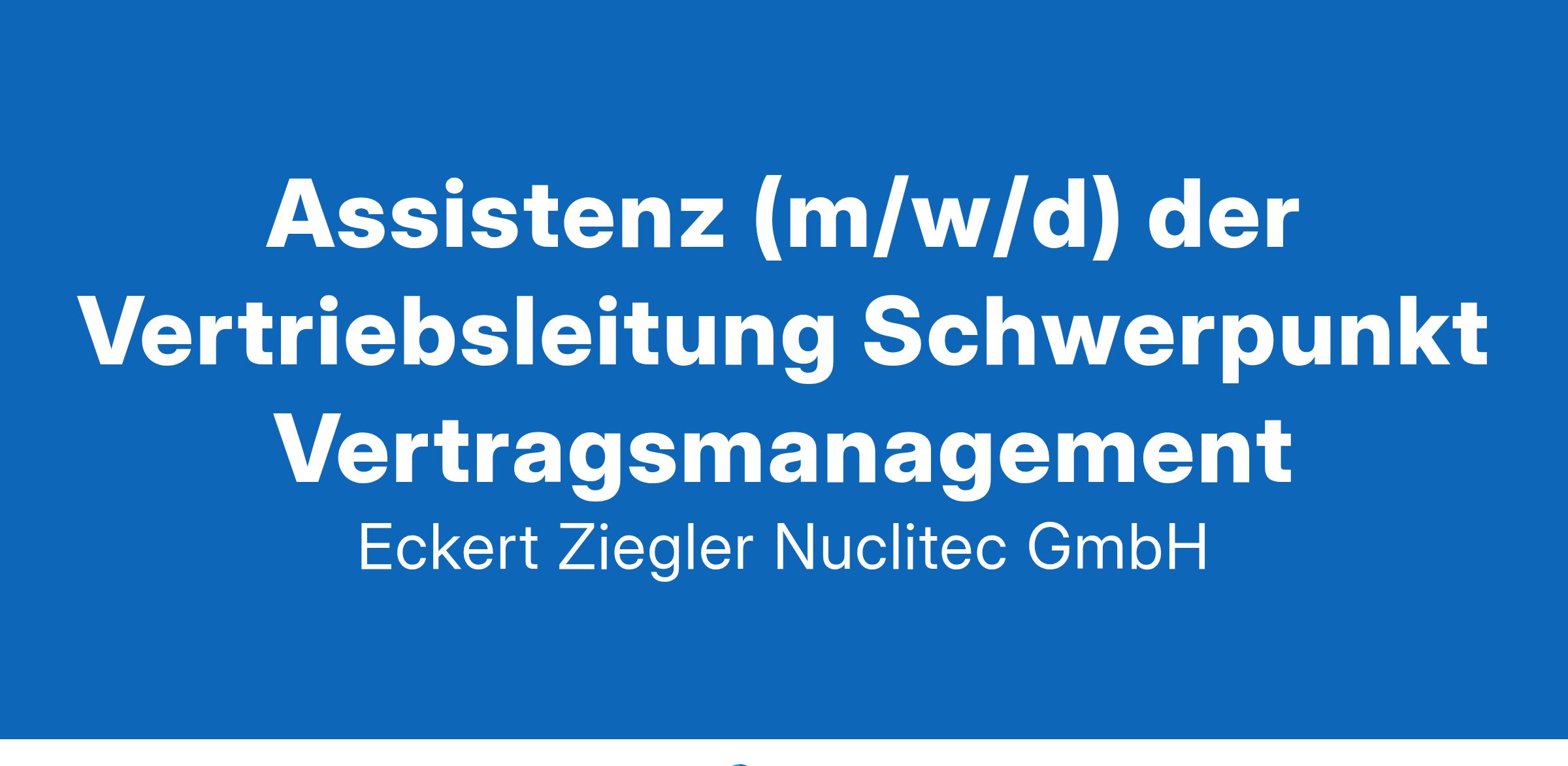 Assistenz (m/w/d) der Vertriebsleitung Schwerpunkt VertragsmanagementWIR HELFEN ZU HEILEN | CONTRIBUTING TO SAVING LIVESHaben Sie sich auch schon immer mal die Frage gestellt, woher Wartungsmonteure von Fahrstühlen wissen, dass eines der Trägerseile einen kleinen Riss hat, der sich zu einer größeren Gefahr entwickeln könnte? Nein? Die Antwort liefern wir, die Eckert & Ziegler Nuclitec GmbH , eine Tochter der Eckert & Ziegler Gruppe.