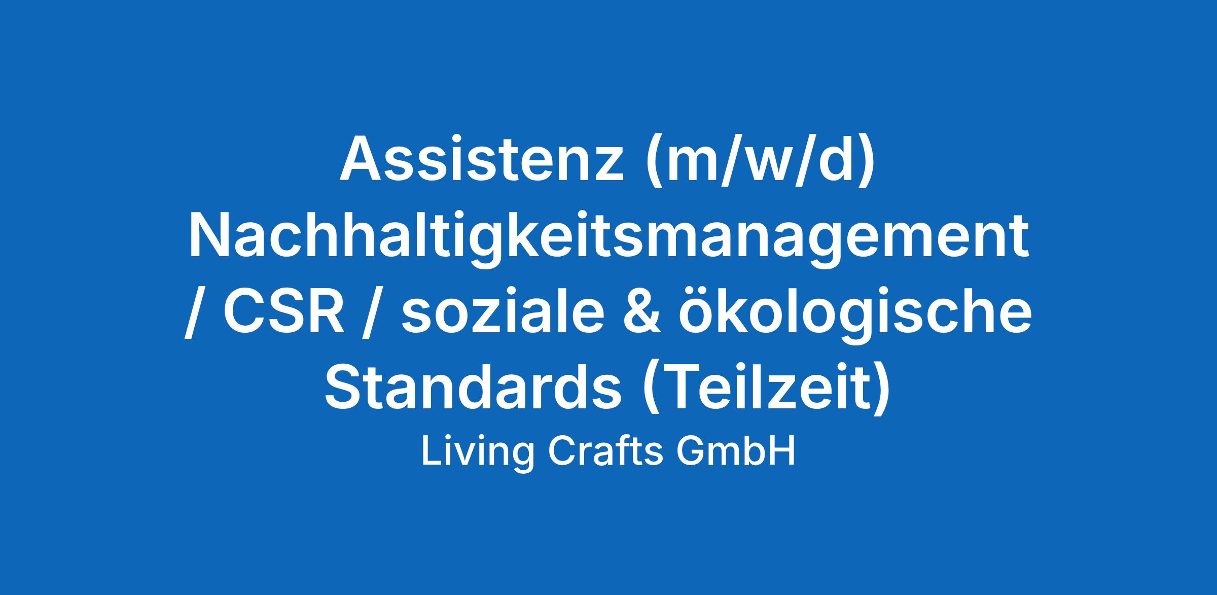 Assistenz (m/w/d) Nachhaltigkeitsmanagement / CSR / soziale & ökologische Standards (Teilzeit)
