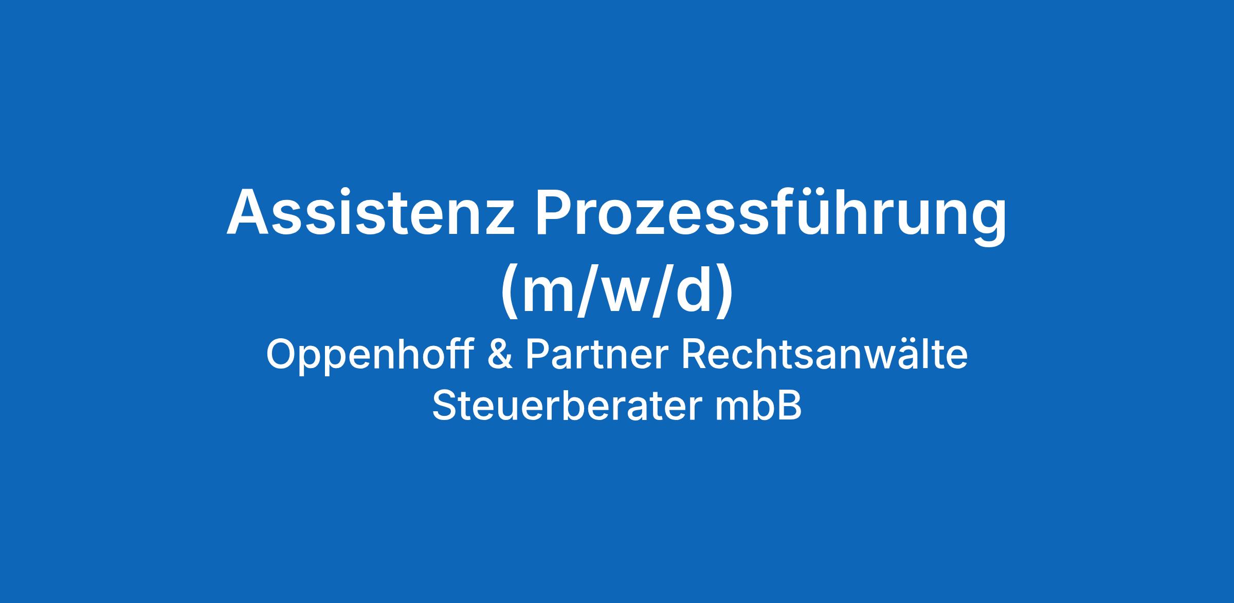 Zur Verstärkung unseres Prozessführungsteams in Köln suchen wir zum nächstmöglichen Zeitpunkt eine Assistenz (m/w/d) in Vollzeit.