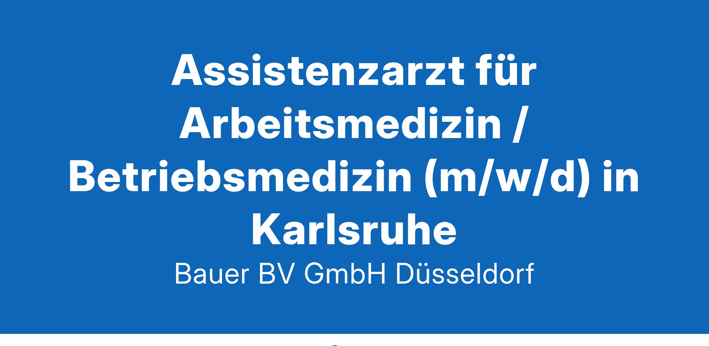 Anstellungsart(en): Teilzeit, VollzeitIhr neuer Arbeitsplatz:Unser Kunde ist Marktführer in der Arbeitsmedizin, Arbeitssicherheit und im Gesundheitsmanagement. Für das Gesundheitszentrum in Karlsruhe suchen wir zum nächstmöglichen Zeitpunkt einen Assistenzarzt (m/w/d) für Arbeitsmedizin.Ihre Vorteile:Weiterbildungsermächtigung Arbeitsmedizin (36 Monate)Persönlicher Betreuung während der Weiterbildung durch MentorInEinarbeitung in ein breites, präventives AufgabenspektrumFreundliches und engagiertes TeamFamilienfreundliche Arbeitszeiten ohne DiensteAttraktive VergütungUnbefristete Festanstellung in Voll- oder TeilzeitIhr Profil:Deutsche Approbation und Sprachlevel C124 Monate absolvierte Weiterbildungszeit in der unmittelbaren PatientenversorgungInteresse an der Arbeits- und BetriebsmedizinIhr Ansprechpartner:Bauer B+V Personalberatung