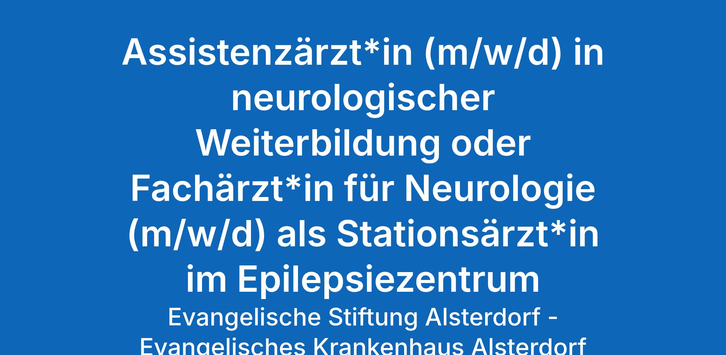 Das Epilepsiezentrum Hamburg - Abteilung für Neurologie sucht: