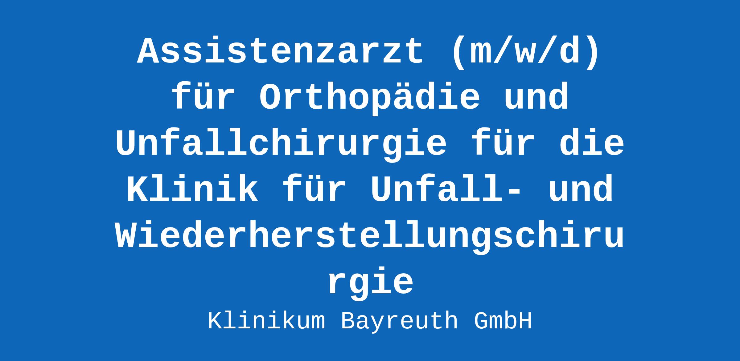 Assistenzarzt (m/w/d) für Orthopädie und Unfallchirurgie für die Klinik für Unfall- und Wiederherstellungschirurgie
