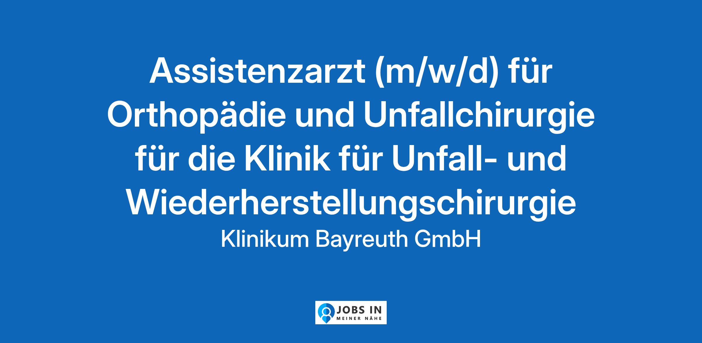 Die Klinikum Bayreuth GmbH erfüllt mit 27 Fachkliniken, 978 Betten und rund 3.500 Mitarbeitenden den Standard der Maximalversorgung und ist der führende Medizin-Dienstleister in Nordostoberfranken. Zudem ist die Klinikum Bayreuth GmbH mit ihren zwei Standorten in Bayreuth die überregional renommierte Anlaufstelle für Patientinnen und Patienten, die auf besonders hochwertige Versorgung Wert legen. Gemeinsam mit der Friedrich-Alexander-Universität Erlangen-Nürnberg, dem Universitätsklinikum Erlangen und der Universität Bayreuth steht die Klinikum Bayreuth GmbH für den Medizincampus Oberfranken. Hier absolvieren Medizin-Studierende den Klinischen Teil ihres Studiums. Damit bietet die Klinikum Bayreuth GmbH weit über die Region hinaus Diagnostik, Therapie, Forschung und Lehre auf universitärem Niveau und verbindet dies mit den Bedürfnissen und Anforderungen der Bevölkerung in Oberfranken nach einer umfassenden Gesundheitsversorgung.