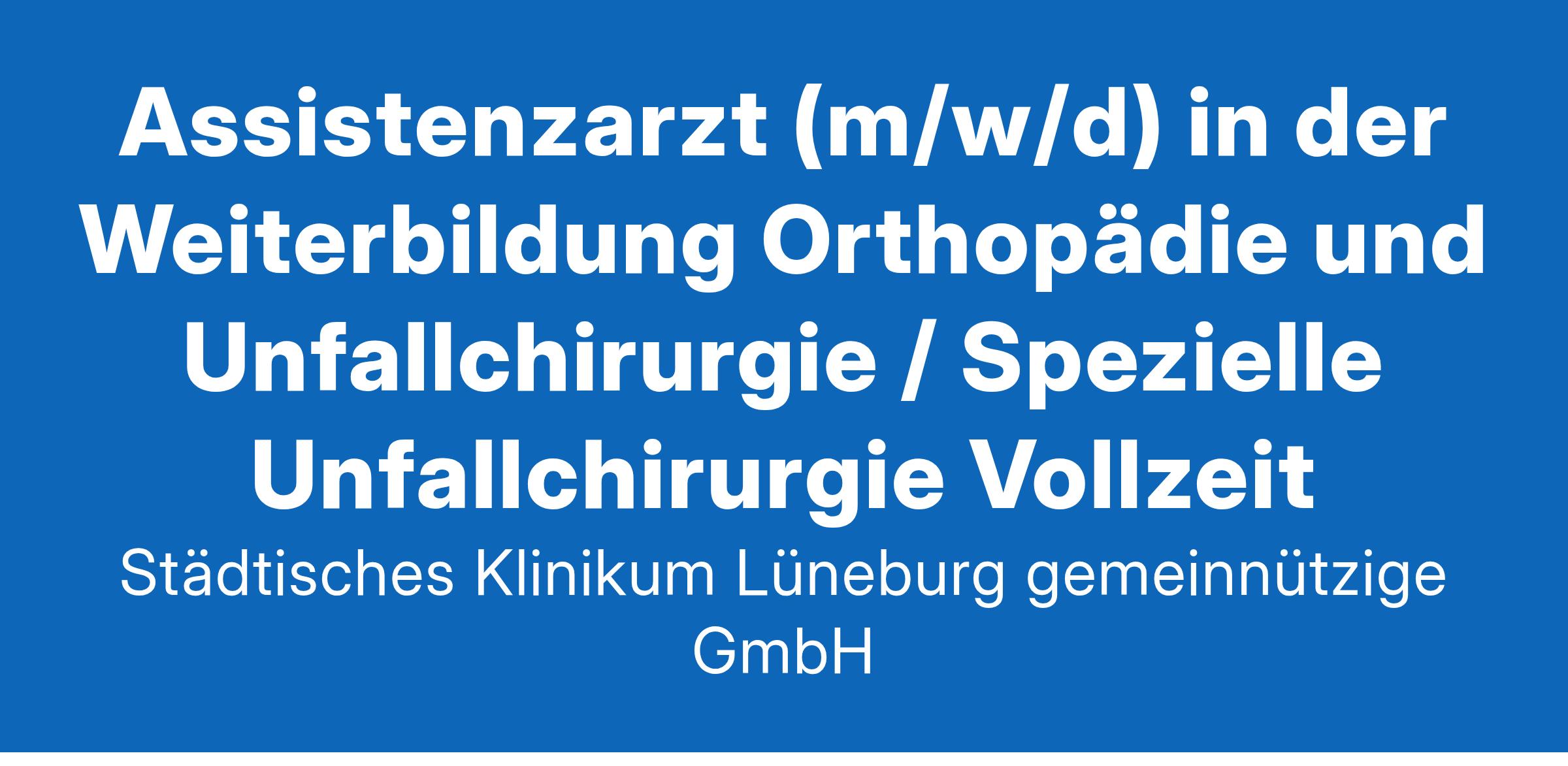 Städtisches Klinikum Lüneburg gemeinnützige GmbH -- Assistenzarzt (m/w/d) in der Weiterbildung Orthopädie und Unfallchirurgie / Spezielle Unfallchirurgie
