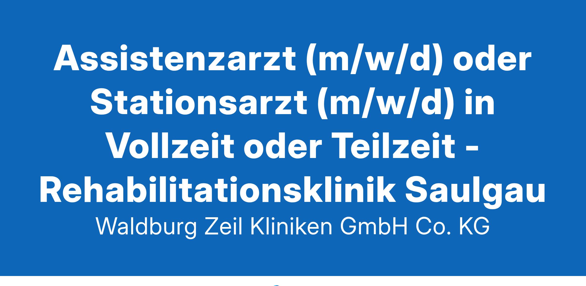 Assistenzarzt (m/w/d) oder Stationsarzt (m/w/d) in Vollzeit oder Teilzeit Eintrittsdatum: ab 01.04.2025 oder nach Vereinbarung