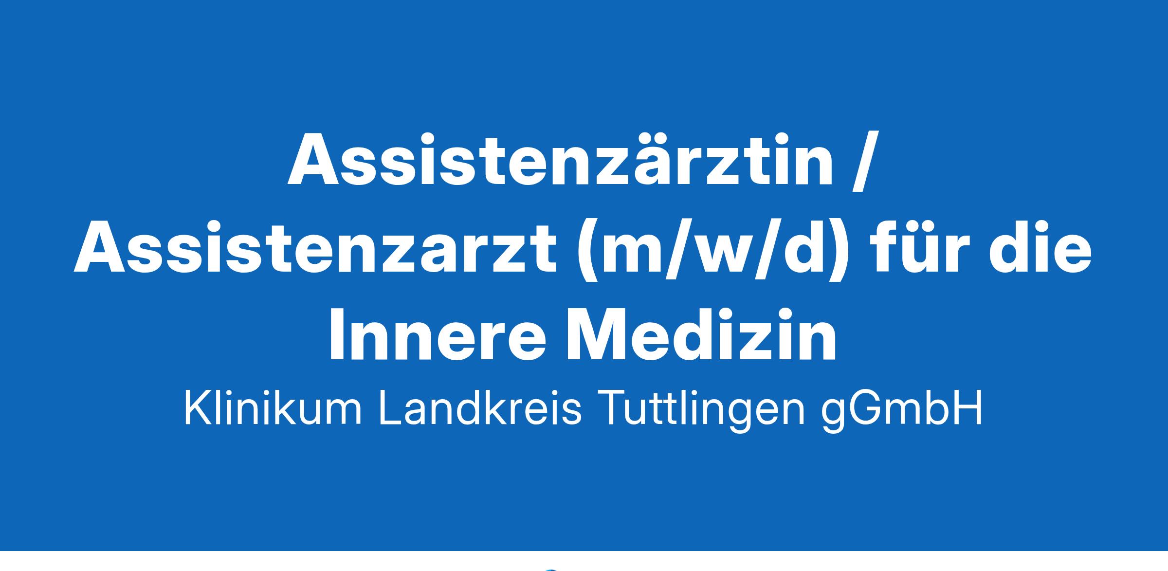 Für unsere Klinikum Landkreis Tuttlingen gGmbH suchen wir zum nächstmöglichen Zeitpunkt:Assistenzärztin / Assistenzarzt (m/w/d) für die Innere MedizinDas Klinikum Landkreis Tuttlingen - Akademisches Lehrkrankenhaus der Universität Freiburg - ist ein Krankenhaus der Regelversorgung mit 324 Betten in den Fachabteilungen Innere Medizin, Chirurgie, Gynäkologie, Anästhesie/Intensivmedizin. Eine radiologische Praxis mit Multislice-CT und MRT sowie eine nuklearmedizinische Praxis sind im Haus vorhanden.