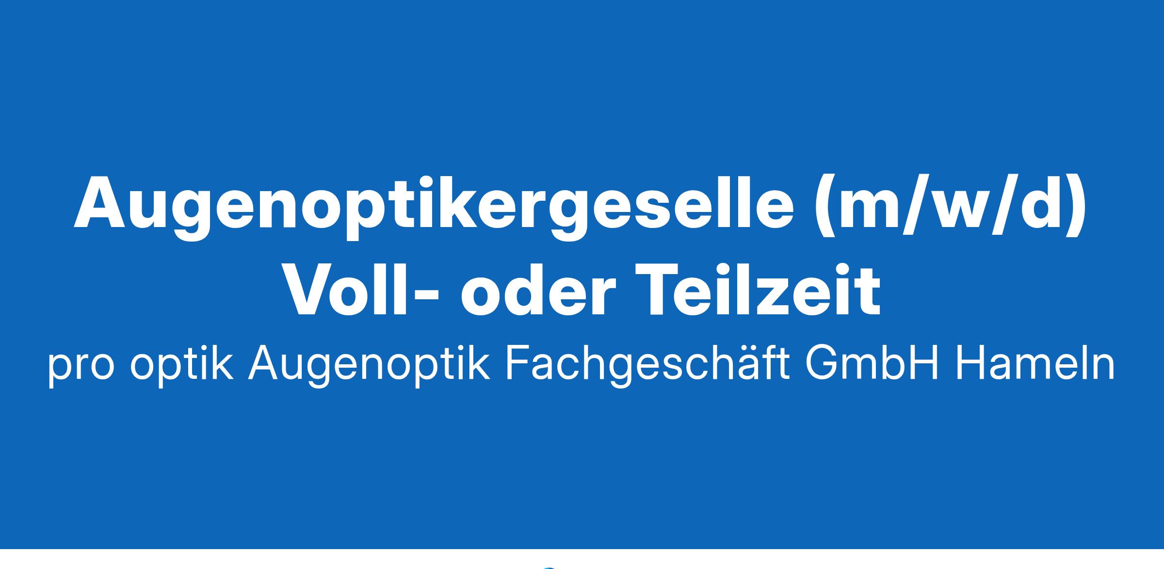 Herzlich Willkommen bei pro optik Ihr Experte in Sachen Augenoptik Werde Teil unserer Erfolgsstory! Die pro optik Gruppe mit Hauptsitz in Wendlingen verfügt über mehr als 195 Verkaufsflächen deutschlandweit mit einem Gesamtumsatz von 144 Mio EUR. Seit 2006 gehört pro optik zu den drei größten Optikergruppen in Deutschland und ist die schnellst wachsende Optikerkette. Wenn Du Teil dieser Erfolgsstory sein möchtest, bist Du bei uns richtig. Zum nächstmöglichen Zeitpunkt suchen wir dich als Augenoptikergeselle (m/w/d) Voll-/Teilzeit am Standort 31785 Hameln Das ist Deine spannende Aufgabe: Du agierst als Stilberater, so dass der Kunde die perfekte Brille für sich findet Als Experte rund ums Sehen bist Du der erste Ansprechpartner für unsere Kunden und begleitest diese von A-Z Du identifizierst Sehschwächen und führst individuelle und fachgerechte Anpassungen durch Das bringst Du mit: Du schaffst es, Menschen durch Deine Art zu begeistern und verstehst es, eine vertrauensvolle Atmosphäre zu schaffen Du bist fachlich fit und hast ein modisches Verständnis dafür, was zu unseren Kunden passt Du beherrschst Dein Handwerk und bist geschickt in der individuellen Anpassung von Brillen und Kontaktlinsen Du hast Spaß daran, in einem dynamischen und modernen Umfeld zu arbeiten Das bieten wir: 4 Tage Woche Wir bieten Dir für Deine Work-Life Balance eine 4 Tage Woche an Wechselprämie Wir bieten Dir eine Wechselprämie sofort bei Vertragsunterschrift von 1.000.-€ (* muss nur bei Eigenkündigung innerhalb der Probezeit zurückbezahlt werden) Fahrtkostenzuschuss Bei uns erhältst Du einen Fahrtkostenzuschuss für deinen Arbeitsweg Sicherheit Mit uns startest Du in ein unbefristetes Arbeitsverhältnis in einem zukunftssicheren Beruf Potenziale entfalten Auf unserem eigenen pro optik campus ermöglichen wir Dir ein umfangreiches Schulungs- und Weiterbildungsangebot Der Meistertitel klingt interessant für Dich? Deine Weiterbildung liegt uns am Herzen: Wir übernehmen die Kosten für Deinen nächsten Schritt. Brille kostenfrei! Wir bieten Dir zwei kostenlose Brille pro Jahr inklusive Gläser in Deiner aktuellen Sehstärke sowie weitere hohe Mitarbeiterrabatte (bis zu 75%) Bleibe fit mit JobRad* Nutze JobRad*, um einen körperlichen Ausgleich zur Arbeit zu schaffen Erholung Pur! Bei uns hast Du einen Anspruch auf sechs Wochen Urlaub Wir beteiligen uns an Deiner Vermögensbildung Du erhältst vermögenswirksame Leistungen Dein eigener Store Chance zur Weiterentwicklung bis zum eigenen Store Wir leben unsere Werte – das Mindset von pro optik Gemeinsamkeit, Tatkraft, Loyalität, Mut und Kreativität Dynamisches Umfeld Bei uns hast Du die Möglichkeit, etwas zu verändern sowie viel Raum für Eigenverantwortung! *variiert je nach Standort So erreichst Du uns: Wenn Du Deine Leidenschaft und Begeisterung in unser Team bringen möchtest, freuen wir uns auf Deine Bewerbung! pro optik Augenoptik Fachgeschäft GmbH Personalabteilung Ulmer Straße 1 | 73240 Wendlingen T: +49 7024 8050-0 | E-Mail: karriere@prooptik.de | www.prooptik.de