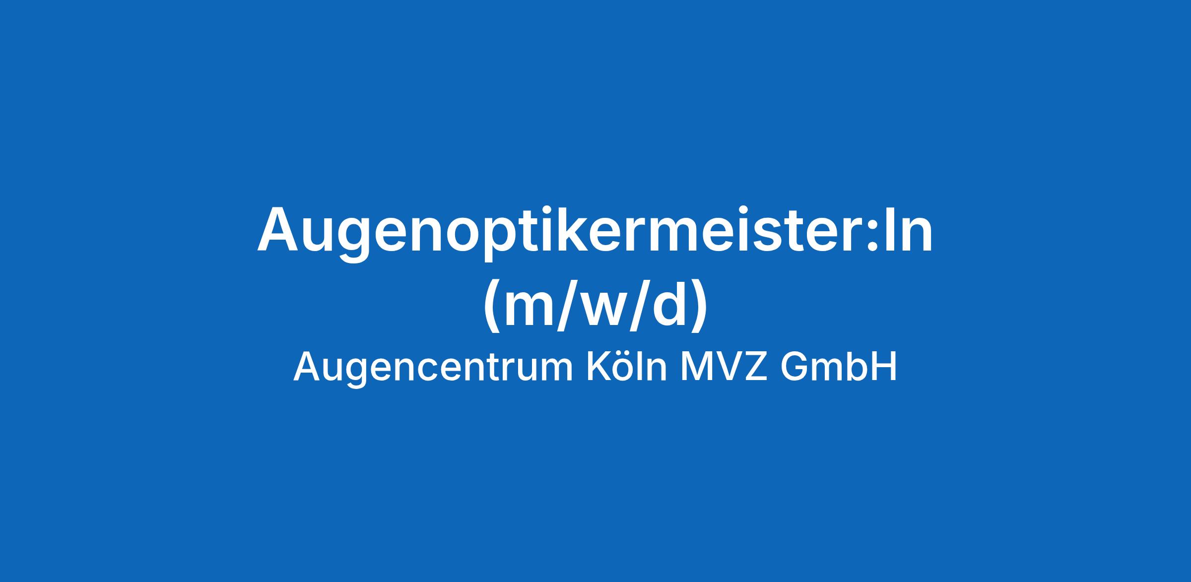 Zum nächstmöglichen Zeitpunkt suchen wir in Vollzeit (40,0 Wochenstunden) einen berufserfahrenen Augenoptikermeister:In (m/w/d) zum Ausbau unseres Refraktiv-Teams an unserem Standort Köln-Porz.