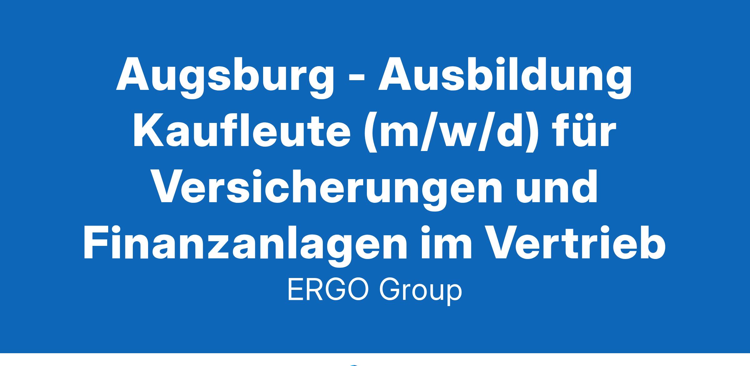 Augsburg - Ausbildung Kaufleute (m/w/d) für Versicherungen und Finanzanlagen im VertriebDu hast Spaß am Umgang mit Menschen? Du arbeitest gern eigenverantwortlich und gibst alles für Deine beruflichen Ziele? Bestens – wir suchen Dich! Komm zu ERGO und schaffe die Basis für eine aussichtsreiche Karriere.Menschen verstehen und gemeinsam Lösungen entwickeln