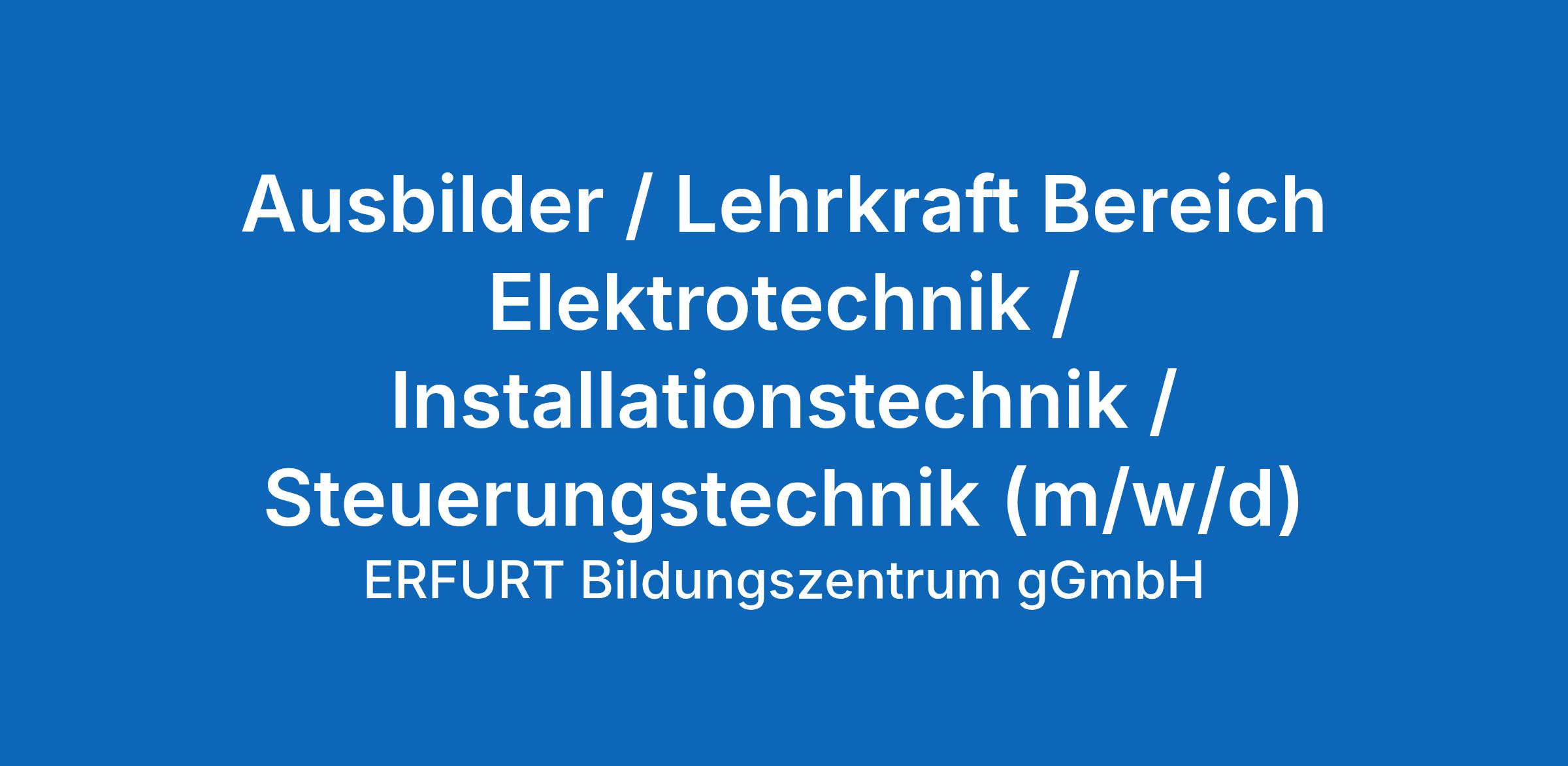 Ausbilder / Lehrkraft Bereich Elektrotechnik / Installationstechnik / Steuerungstechnik (m/w/d)