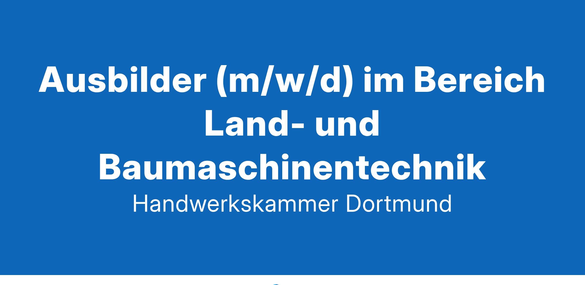 Die Handwerkskammer Dortmund bietet Ihnen im Rahmen einer Tätigkeit als Ausbilder (m/w/d) im Bereich Land- und Baumaschinentechnik interessante berufliche Perspektiven. Wir sind Dienstleister für kleine und mittelständische Unternehmen des Handwerks in der Region und suchen Sie als Unterstützung für unseren Fachbereich in Soest. Das erwartet Sie bei uns: Ihre Einstellung erfolgt unbefristet, die Probezeit beträgt sechs Monate Entsprechend der persönlichen Qualifikation und Erfahrung bieten wir ein Jahresbrutto nach 9b TV-L, eine bezuschusste Altersvorsorge und 30 Tage Urlaub plus betriebsfrei am 24. und 31. Dezember Wir bieten eine gute Work-Life-Balance mit einem modernen Arbeitsplatz und grundsätzlich flexibler Arbeitszeitregelung (mobiles Arbeiten) sowie guter Anbindung an die öff. Verkehrsmittel (Job-Ticket) Wir fördern Ihre Gesundheit im Rahmen unseres Gesundheitsmanagements, wir bieten Ihnen ein regelmäßiges Weiterbildungsangebot, Mitarbeiterrabatte, Fahrradleasing sowie kostenfreie Parkplätze. Das sind Ihre Aufgaben: Durchführung des Unterrichts im Rahmen der überbetrieblichen Ausbildung Unterstützung im Beschaffungs- und Bestellwesen sowie der Lehrgangsverwaltung für den Fachbereich Als Ausbilder*in bringen Sie neue Impulse ein und tragen somit aktiv zur Weiterentwicklung des Fachbereichs bei Sie haben Interesse am Aufbau neuer Netzwerke mit Material- sowie Maschinenherstellern Sie bringen mit: Sie sind Meister*in im Landmaschinentechniker-Handwerk oder haben einen vergleichbaren Abschluss mit Berufserfahrung Sie suchen eine neue Herausforderung als Ausbilder*in im Rahmen der überbetrieblichen Unterweisung von jungen Erwachsenen oder auch in der Fort- und Weiterbildung Ein hohes Maß an Flexibilität und Mobilität (Führerschein Klasse B) im Rahmen verschiedener Einsatzorte im gesamten Kammerbezirk Teambereitschaft und den Willen zur kontinuierlichen Fortbildung Gute Umgangsformen, Belastbarkeit und Verbindlichkeit im Umgang Sie sind sicher im Umgang mit MS-Office-Anwendungen und offen für die Nutzung weiterer IT-Programme zur Lehrgangsverwaltung (u.a. Moodle) Neugierig geworden? Dann laden Sie Ihre Online-Bewerbung auf unserem Karriere-Portal unter www.hwk-do.de/karriere hoch. Bewerbungen, die per E-Mail oder Post eingereicht werden, finden im Bewerbungsverfahren keine Berücksichtigung. Handwerkskammer Dortmund Personalabteilung – Frau Schubert Telefon: 0231 5493-126