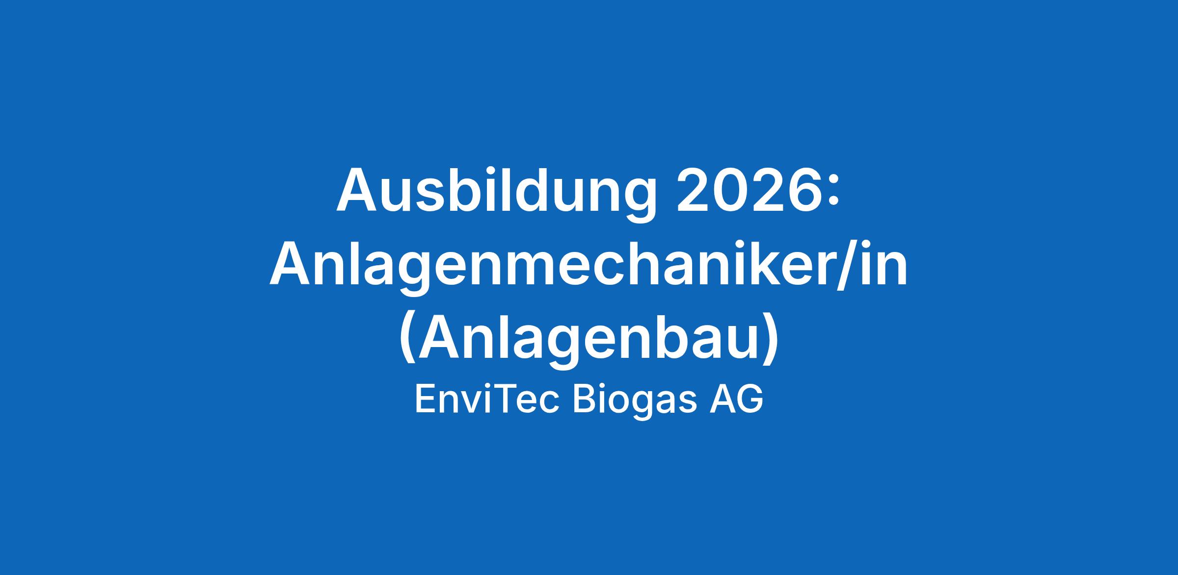 Die EnviTec Anlagenbau GmbH & Co. KG ist Teil der EnviTec Biogas AG, einem führenden Unternehmen der erneuerbaren Energien mit Fokus auf die internationale Biogasbranche und rund 700 Mitarbeitenden. Innerhalb der Gruppe verantwortet der Anlagenbau die Planung und Umsetzung von Biogas- und Biomethananlagen. Zum 01.08.2026 bieten einen Ausbildungsplatz als Anlagenmechaniker/in in 48369 Saerbeck an.