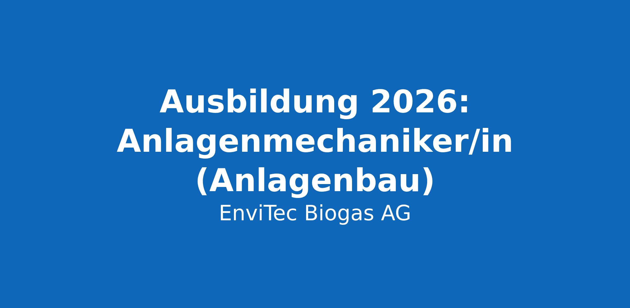 Die EnviTec Anlagenbau GmbH & Co. KG ist Teil der EnviTec Biogas AG, einem führenden Unternehmen der erneuerbaren Energien mit Fokus auf die internationale Biogasbranche und rund 700 Mitarbeitenden. Innerhalb der Gruppe verantwortet der Anlagenbau die Planung und Umsetzung von Biogas- und Biomethananlagen. Zum 01.08.2026 bieten einen Ausbildungsplatz als Anlagenmechaniker/in in 48369 Saerbeck an.