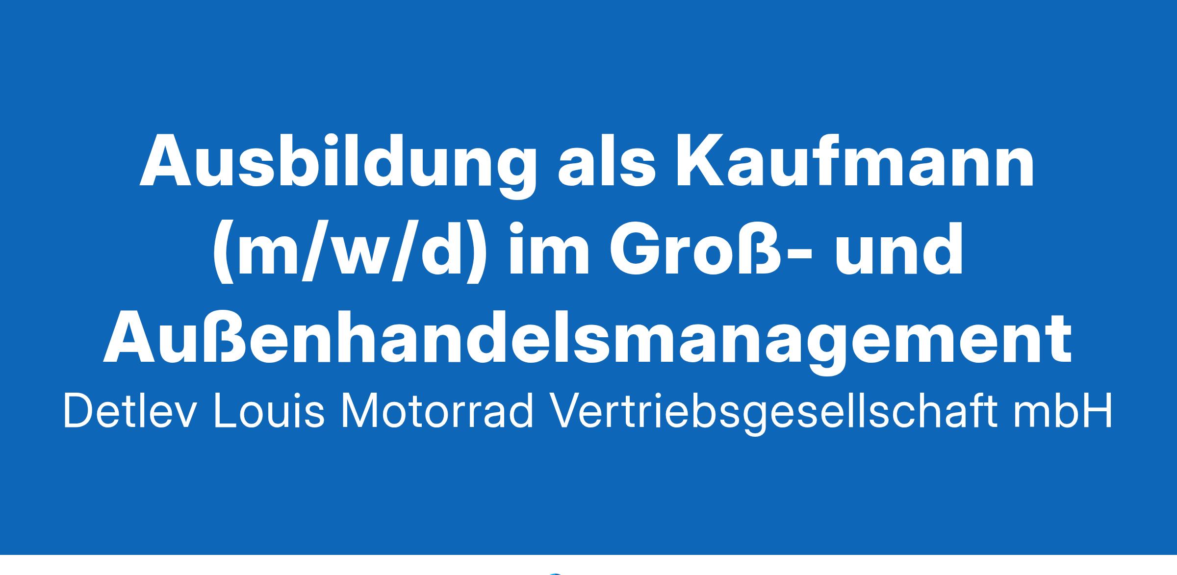 Als modernes Cross-Channel-Unternehmen bieten wir in über 85 Filialen in Deutschland, Österreich, der Schweiz und in den Niederlanden sowie mit einem Versandhandel über Onlineshop und Printmedien Europas größte Einkaufswelt für Motorradbekleidung und -zubehör. Wir bieten sichere Arbeitsplätze mit guten Konditionen und ein tolles Betriebsklima. Über 2.200 teamorientierte, motivierte Mitarbeitende freuen sich auf dich. Ausbildung als Kaufmann (m/w/d) im Groß- und Außenhandelsmanagement Ausbildungsbeginn ist im August 2025 Die praktische Ausbildung absolvierst du in unserer Firmenzentrale in Hamburg-Allermöhe Die Ausbildungsdauer beträgt 3 Jahre, bei guten Leistungen besteht die Möglichkeit, deine Ausbildung zu verkürzen Du sorgst dafür, dass das Sortiment bei Louis immer auf dem neuesten Stand ist. Dazu kümmerst du dich nicht nur um Warenbestellungen, du bist auch an der Entwicklung neuer Produkte beteiligt: Marktbeobachtung, Musterbeschaffung, Qualitätssicherung, Preisgestaltung – die Aufgaben gehen über das reine Kaufmännische weit hinaus. Und weil du das alles in enger Zusammenarbeit mit unseren Lieferanten in Übersee erledigst, solltest du gut Englisch sprechen.Deine Aufgaben: Du durchläufst viele verschiedene Abteilungen wie z.B. Einkauf, Vertriebsinnendienst, Rechnungswesen Dabei lernst du alles über die Artikeldisposition, die Geschäftsabwicklung und die Analyse der Märkte und erhältst Einblicke in die Produktentwicklung und Preisgestaltung Du kommunizierst stetig mit Kunden oder Lieferanten und Dienstleistungsunternehmen im In- und Ausland Dein Profil: Du bringst überdurchschnittliche Lern- und Leistungsbereitschaft mit Du hast Verständnis für Zahlen sowie Freude am Verkaufen und Handeln Gute Kommunikationsfähigkeit und hohe Zuverlässigkeit Du hast einen guten Realschulabschluss/MSA oder Abitur Wir bieten: Einen Ausbildungsplatz in einem dynamischen und durch Wachstum gekennzeichneten Unternehmen in einem modernen und wertschätzenden Arbeitsumfeld mit entsprechender Ausstattung Interessante und vielseitige Herausforderungen mit hoher Eigenverantwortlichkeit im Rahmen von kollegialem Miteinander und einer Duzkultur auf allen Ebenen von Beginn an Sympathische Teams mit kurzen Entscheidungswegen Fachliche und persönliche Entwicklungsmöglichkeiten, u.a. mit fester wöchentlicher Lernzeit auf der digitalen Lernplattform Masterplan Monatlich stattfindende Azubi-Besprechungen sowie die Möglichkeit zur Mitarbeit in Projekten Gleitzeit im Rahmen von flexiblen Arbeitszeiten innerhalb einer 37-Stunden-Woche Den Ausgleich von Überstunden bei minutengenauer Abrechnung, 30 Tage Urlaub pro Jahr sowie Urlaubs- und Weihnachtsgeld Eine hohe Übernahmechance in vielen unserer Abteilungen Eine Kantine mit vergünstigten Mahlzeiten, Mitarbeitendenrabatt sowie zahlreiche Vorteile bei Partnerunternehmen Parkplätze, eine gute Anbindung an den ÖPNV und Bezuschussung des Deutschland Tickets KontaktVorab-Info: Manon Klintworth, HR Coordinator Trainee & Education, +49 40 734 193 333 Interesse? Deine aussagekräftige Bewerbung kannst du direkt hier hochladen. Detlev Louis Motorrad-Vertriebsgesellschaft mbH Personalentwicklung Rungedamm 35 21035 Hamburg jobs@louis.de