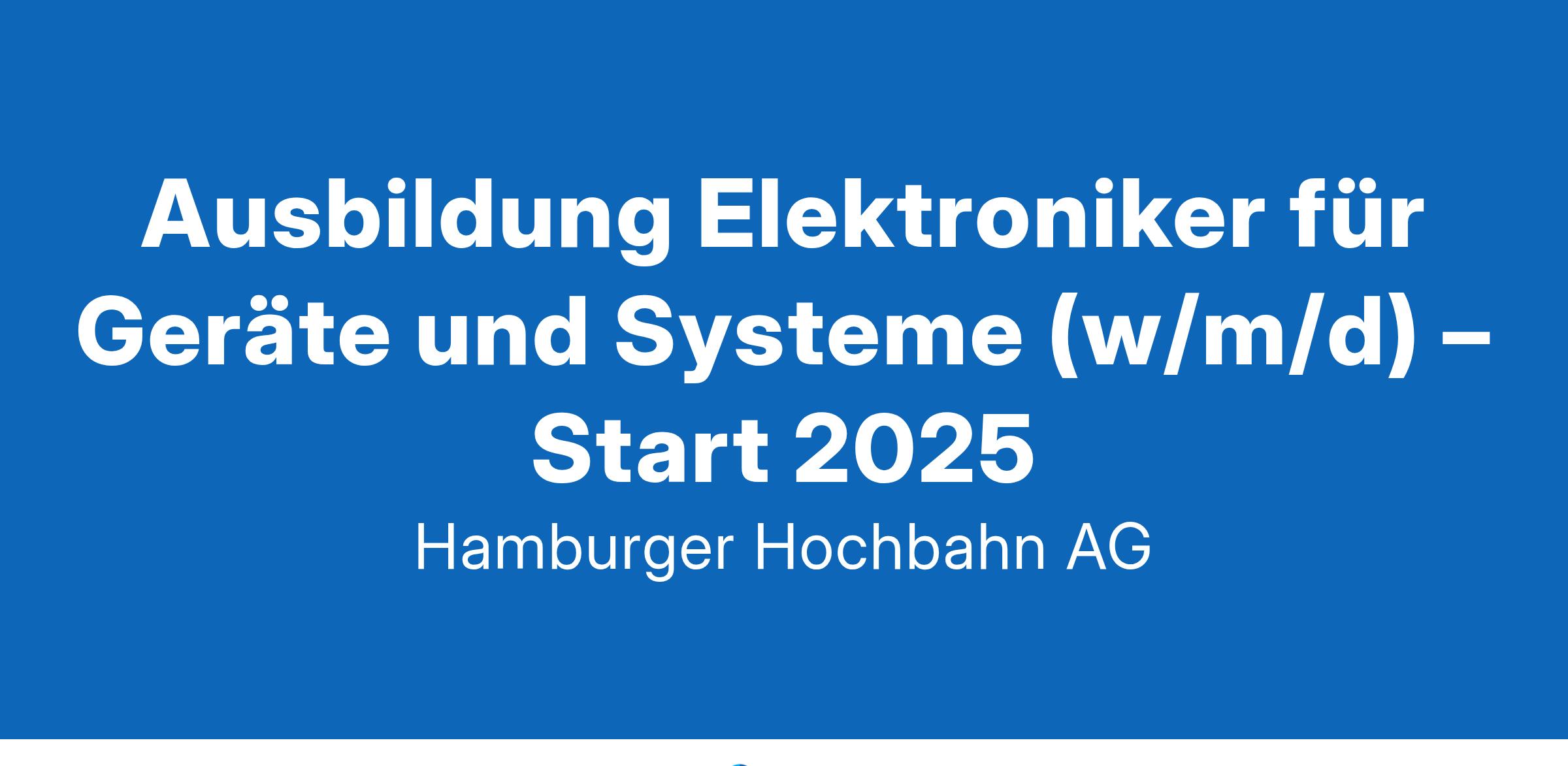 Du – deine Rolle bei uns Als modernes Verkehrsunternehmen nutzt die HOCHBAHN hochkomplexe elektronische Systeme in der Leit- und Zugsicherungstechnik: Signale, Zugfunk, Überwachungskameras, Monitore, Lautsprecher, Infosäulen, Fahrkartenautomaten. Damit wir unsere Technik weiterhin bestens im Griff haben, brauchen wir dich! Ausbildungsvergütung: 1. Jahr: 1.333 €; 2. Jahr: 1.380 €; 3. Jahr: 1.444 €; 4. Jahr: 1.513 €Deine Aufgaben – das machst du bei uns Du installierst, wartest und reparierst unsere Zugsicherungs- und Kommunikationstechnik. Bei Störungen an unseren Fahrkartenautomaten stehst du parat. Du konfigurierst unsere digitalen Sprachaufzeichnungen und Zugzielanzeiger, damit ganz Hamburg weiß, wo es langgeht. Du arbeitest an elektronischen Schaltungen und Platinen. Du programmierst Software. Dein Profil – das bringst du mit Einen guten Mittleren Schulabschluss hast du in der Tasche. Elektronische Hard- und Software sind dein Ding. Handwerklich hast du es voll drauf. Auf dich ist Verlass, du bist verantwortungsbewusst und engagiert. Dauer der Ausbildung: 3,5 Jahre (bei guten Leistungen ist eine Verkürzung auf 3 Jahre möglich) Überbetriebliche Ausbildungsorte: Hamburger Ausbildungszentrum (HAZ), Hamburg-Hummelsbüttel Berufliche Schule Energietechnik Altona, Hamburg-Altona Deine Benefits – das bieten wir dirHohe Übernahmequote