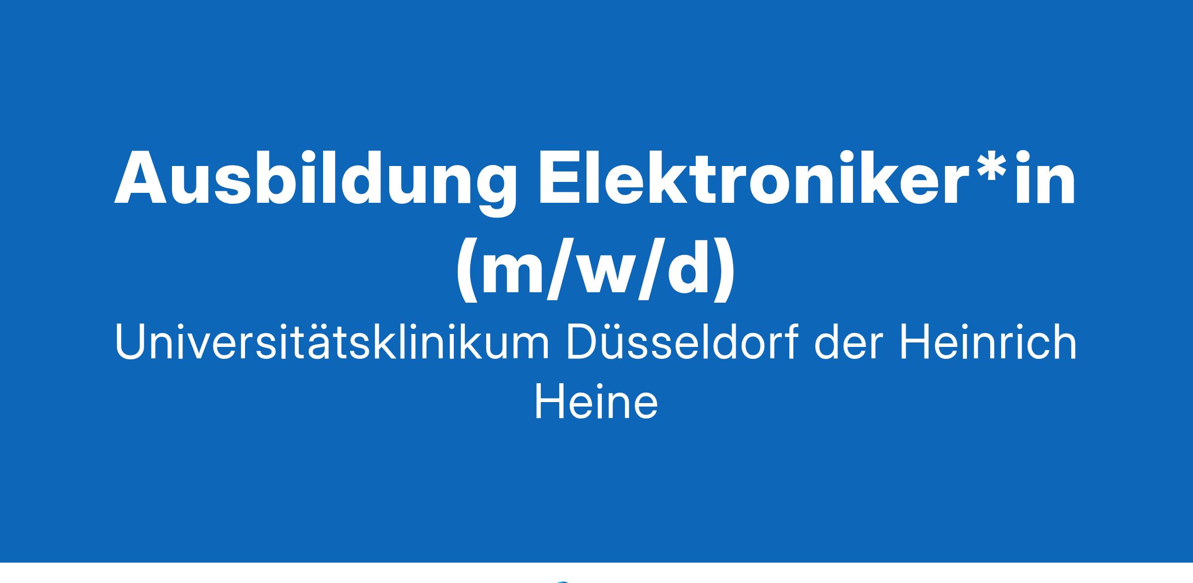 Unsere Auszubildenden sind die Fachkräfte der Zukunft! Du bist auf der Suche nach einem vielfältigen Ausbildungsprogramm bei einem attraktiven Arbeitgeber? Dann bist du am Universitätsklinikum Düsseldorf genau richtig. Mit rund 9.300 Beschäftigten sind wir einer der größten Arbeitgeber Düsseldorfs und entwickeln uns permanent weiter. Durch unsere Größe und optimale Ausstattung sowie die Verbindung zu Forschung und Lehre bietet das Universitätsklinikum ein breitgefächertes Aufgabenspektrum, das den Arbeitsalltag äußerst vielfältig gestaltet. Für unser Dezernat 04 – Bau und Technik suchen wir zum 01.08.2025: Zwei Auszubildende zum/zur Elektroniker*in (m/w/d)