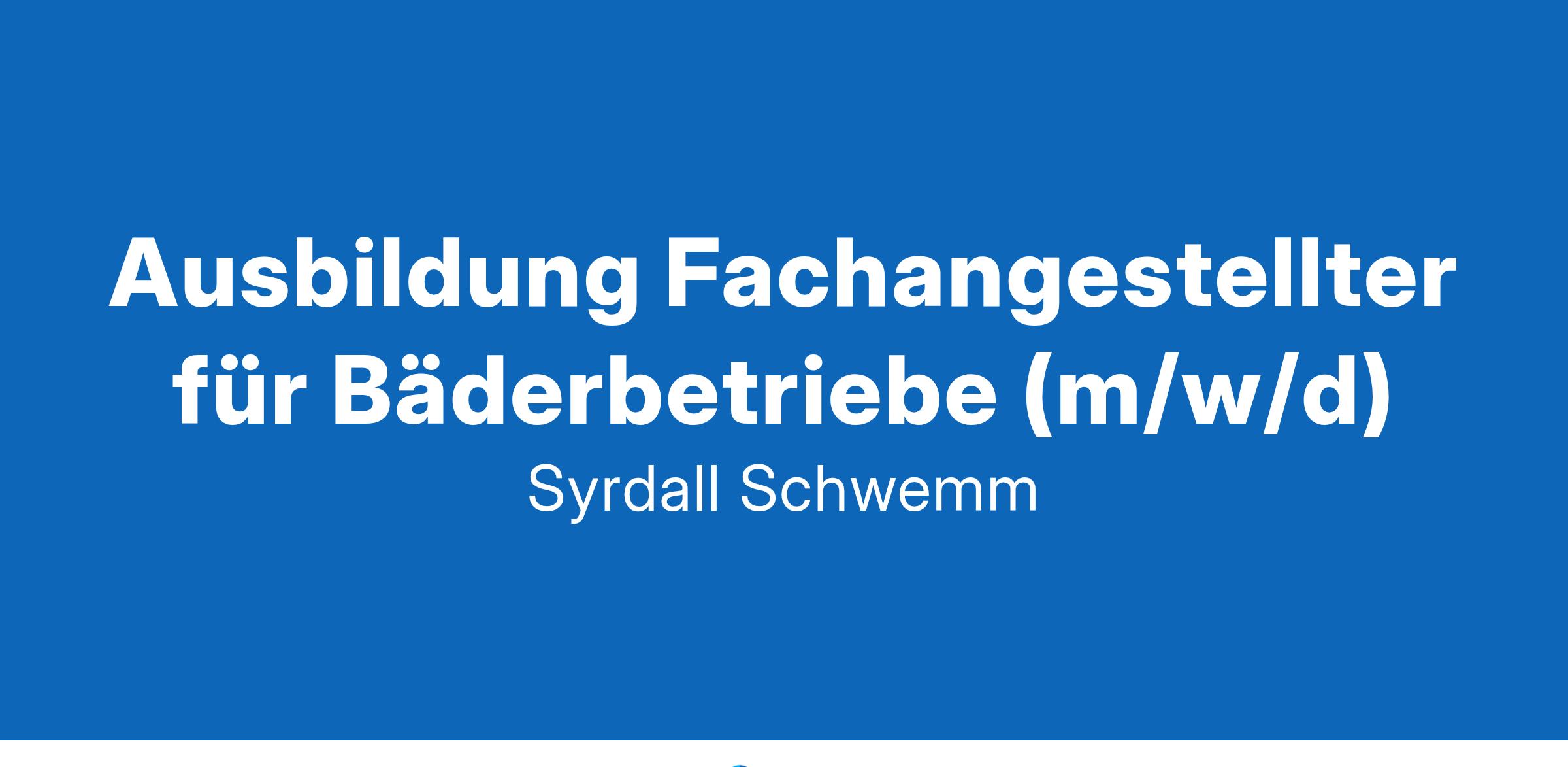Das Syndicat intercommunal C.N.I. “Syrdall Schwemm” im grenznahen Niederanven (Luxemburg) sucht für das Schul- und Freizeitschwimmbad mit Saunaanlage ab September 2025: Auszubildende zum Fachangestellten für Bäderbetriebe (m/w/d) Haben wir Ihr Interesse geweckt? Dann freuen wir uns auf Ihre aussagekräftige Bewerbung bis zum 28.02.2025 an das Syndicat intercommunal C.N.I. “Syrdall Schwemm”, 3, Routscheed, L-6939 Niederanven oder per Email: direktion@syrdall-schwemm.lu Weitere Informationen über uns und unser Erlebnisbad erhalten Sie unter www.syrdall-schwemm.lu. Vertrauliche telefonische Kontaktaufnahme (+352 3493631).