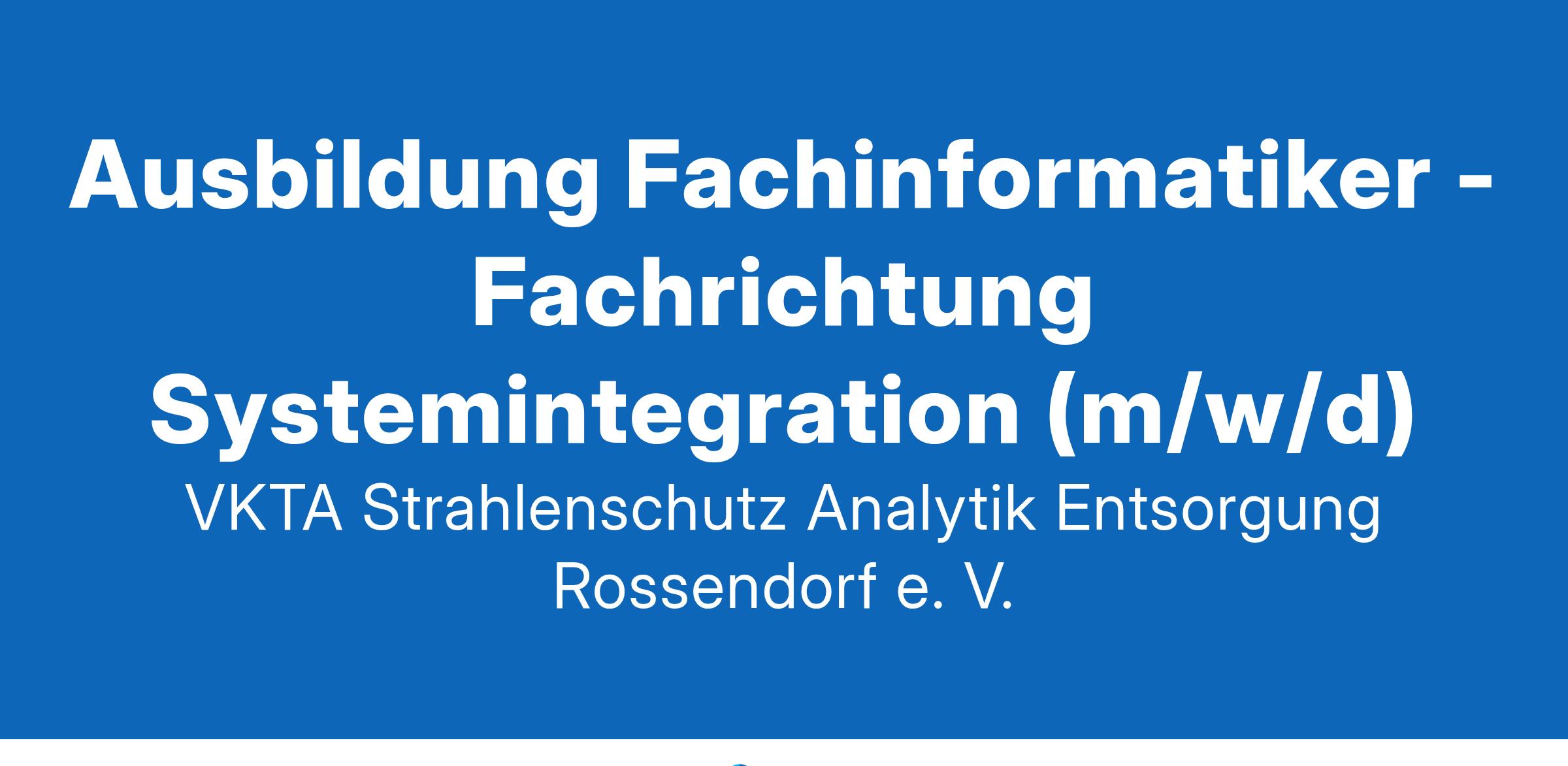 Strahlenschutz, Analytik & Entsorgung sind unsere Expertise. Engagiere dich mit uns! Der VKTA sucht ab 01.09.2025 einen Auszubildenden als Fachinformatiker - Fachrichtung Systemintegration (m/w/d) Im Team Kommunikation und Datenverarbeitung lernst du im Rahmen der dreijährigen Ausbildung die umfangreichen Aufgaben für den zuverlässigen Betrieb der IT-Infrastruktur und das Management der Soft- und Hardware im Unternehmen kennen. Neben diesen Aufgaben erhältst du Einblicke in spannende Software- und Datenbankprojekte der Fachabteilungen sowie in die übergeordnete IT-Infrastruktur des Forschungsstandortes Rossendorf. Was dich erwartet: eine vielseitige und abwechslungsreiche Ausbildung mit dem Schwerpunkt Inbetriebnahme und Verwaltung von IT-Systemen Mitwirkung beim Umsetzen und Prüfen von Maßnahmen zur IT-Sicherheit Beratung und Support von Mitarbeitern in Soft- und Hardwareangelegenheiten Mitarbeit bei der Entwicklung und Betreuung von Fachsoftware die Möglichkeit auf einen zukunftssicheren Arbeitsplatz nach erfolgreich abgeschlossener Ausbildung attraktive Ausbildungsvergütung nach Tarif und 30 Tage Erholungsurlaub im Jahr Benefits, wie Gesundheitstage, Jobticket und Jahressonderzahlung Was du mitbringst: mindestens einen mittleren Bildungsabschluss gute Deutschkenntnisse Interesse und gute Leistungen in Mathematik, Informatik und Physik Interesse an Technik und am Programmieren Teamfähigkeit, Aufgeschlossenheit und lösungsorientiertes Arbeiten Wir haben dein Interesse geweckt? Dann schicke uns deine aussagekräftige Bewerbung bitte bis 1. April 2025 ausschließlich per E-Mail an die Personalabteilung unter: personal@vkta.de. Du hast noch Fragen? Dann kannst du dich gerne an unsere Personalabteilung unter der Telefonnummer 0351 260-3017 wenden. Weitere Hinweise zum Bewerbungsverfahren findest du auf unserer Website www.vkta.de. Bewerbungen grundsätzlich geeigneter schwerbehinderter Menschen, auch Gleichgestellter, begrüßen wir. VKTA - Strahlenschutz, Analytik & Entsorgung Rossendorf e. V. Bautzner Landstraße 400 | 01328 Dresden www.vkta.de