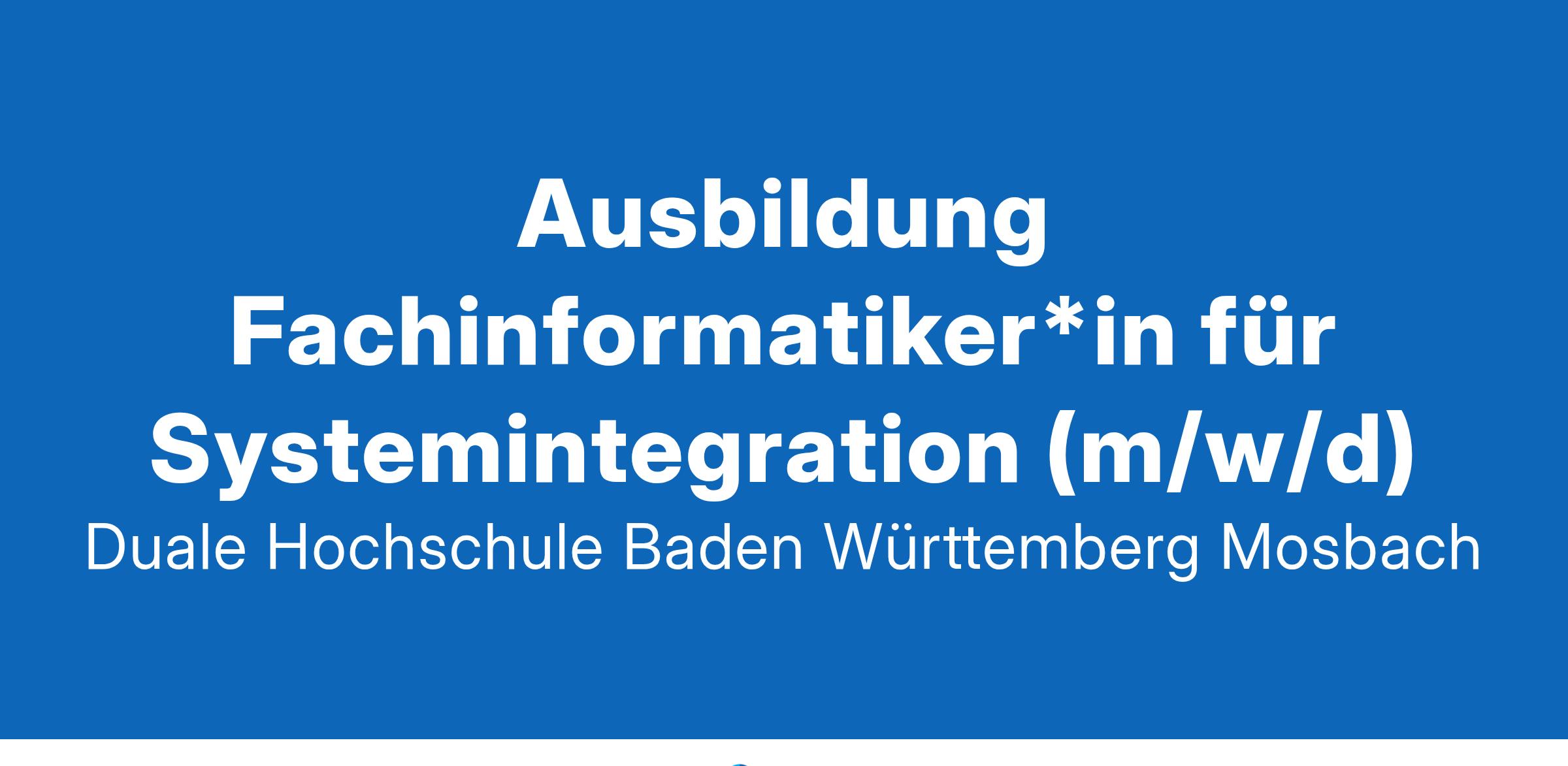 mit Zukunft. Die Duale Hochschule Baden-Württemberg (DHBW) ist mit rund 33.000 Studierenden an neun Studienakademien und drei Campus sowie dem Center for Advanced Studies die größte Hochschule Baden-Württembergs. Gemeinsam mit 9.000 ausgewählten Unternehmen sowie sozialen und gesundheitsnahen Einrichtungen sorgt die DHBW für einen in Theorie und Praxis exzellent qualifizierten Fach- und Führungskräftenachwuchs in den Bereichen Wirtschaft, Technik, Sozialwesen und Gesundheit. Seit 1. Januar 2023 ist sie Teil der dualen European University EU4Dual. Werde Teil unserer Hochschulfamilie an der DHBW Mosbach, wo High Tech auf Natur trifft und wo eine gute und erfüllende Lehre und kooperative Forschung Freude machen. Entwickle mit deinen neuen Ideen ca. 3.200 junge Talente in 37 wirtschafts- und ingenieurwissenschaftlichen Studienangeboten in Theorie und Praxis bedarfsgerecht zu hoch qualifiziertem Fach- und Führungskräftenachwuchs. Dies tun wir in Kooperation mit 1.000 Dualen Partnern aus der Region der Weltmarktführer und überregional. Es ist folgende Stelle zu besetzen: Ausbildung zum*zur Fachinformatiker*in für Systemintegration (m/w/d) Stellenbeginn: 01.09.2025 Arbeitsort: Mosbach Stellenumfang: 100 % Dauer: 3 Jahre Vergütung: gemäß TVA-L BBiG Verfahrensnummer: A4 Deine Aufgaben: Du gehörst zum Kernteam unseres IT-Service und arbeitest mit anderen Stellen an der DHBW und externen Dienstleistern zusammen. Als Fachinformatiker*in für Systemintegration sind deine Aufgaben u.a.: Installation von Softwarelösungen Einrichtung und Bereitstellung, sowie Integration ins Netzwerk von Arbeitsplätzen (Hardware & Zubehör) Auswahl und Einrichtung der Medientechnikinfrastruktur Unterstützung bei der Medientechnik und technischen Präsentationssystemen Fehleranalyse und Problembehebung an Arbeitsplätzen und im Netzwerk Betreuung der Druckinfrastruktur Aktualisierung des Webauftritts des ITS Dein Profil: Du hast eine abgeschlossene Fachhochschulreife, eine gute mittlere Reife oder stehst kurz vor deinem Abschluss Du bist neugierig auf Informatik-, Web- und Medien-Themen Du hast bereits erste Erfahrungen in Soft- und Hardwarethemen sowie in Programmiersprachen Du bringst Engagement und Teamgeist mit Unser Angebot: Eine abwechslungsreiche und zukunkftsorientierte Berufsausbildung im IT-Bereich Ausbildungsvergütung nach TVAL-BBiG (1. Ausbildungsjahr 1.236,82 €, 2. Ausbildungsjahr 1.290,96 €, 3. Ausbildungsjahr 1.340,61 €) und Jahressonderzahlung Abschlussprämie bei erfolgreich abgeschlossener Abschlussprüfung 30 Urlaubstage und eine durchschnittliche Arbeitszeit bei Vollzeit von 39,5 Stunden Großzügige Gleitzeitregelung und flexible Arbeitszeitmodelle Teilnahme an Veranstaltungen der DHBW und Events für Mitarbeitende Vielfältige Angebote unseres internen Fortbildungs- und Gesundheitsmanagements Mensa mit wechselnden Gerichten Anbindung zum ÖPNV, Zuschuss zum JobTicket BW Aufgrund der Unterrepräsentanz von Frauen sind ihre Bewerbungen besonders erwünscht. Online-Bewerbung Wir freuen uns auf deine Online-Bewerbung über unser Bewerbungsportal bis zum 26.01.2025! Du hast Fragen?