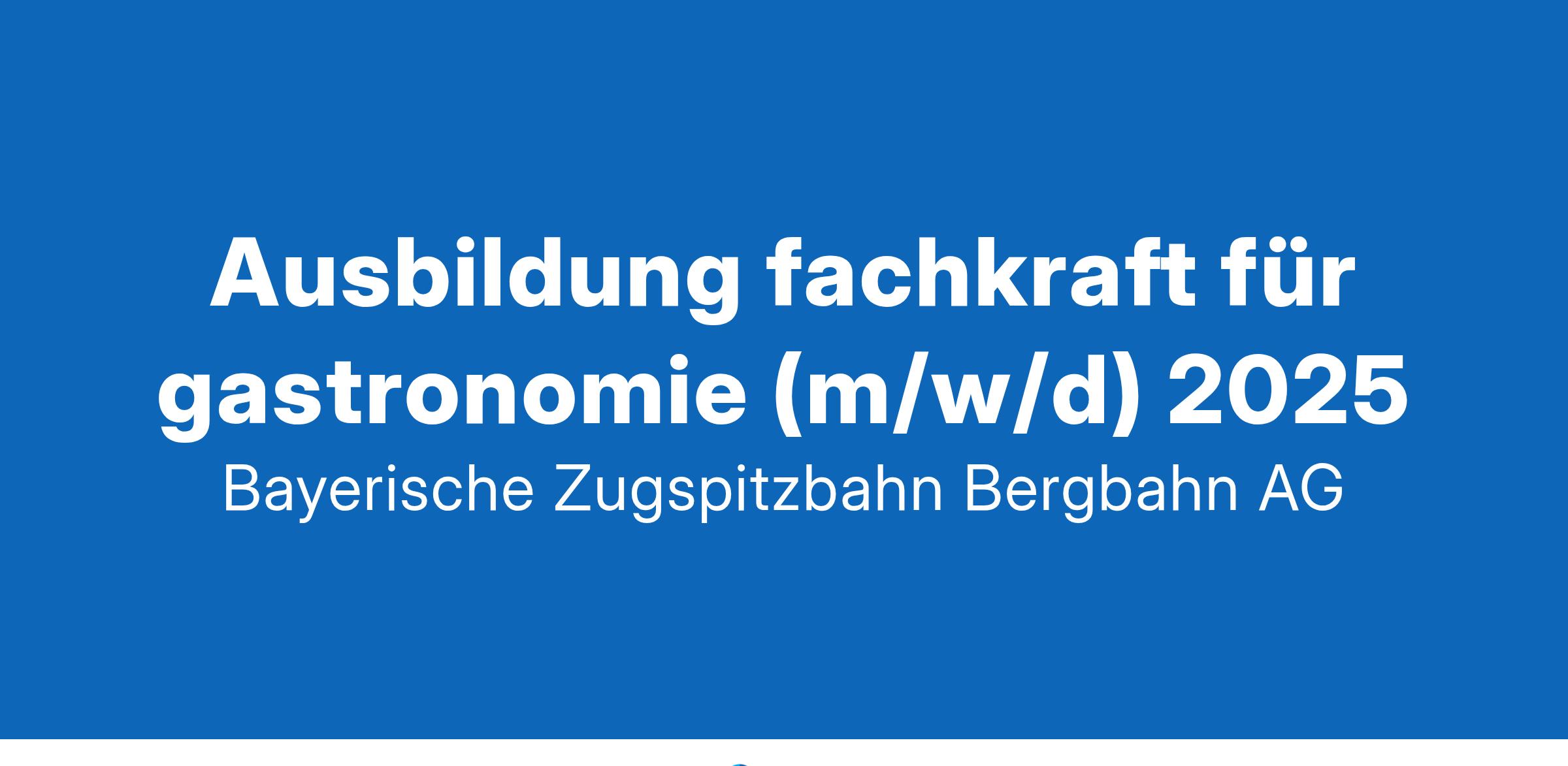 KOMM ZU UNS - KOMM IN UNSER TEAMWas dich erwartetWährend deiner zweijährigen Ausbildung lernst du sämtliche Abläufe in unseren gastronomischen Einrichtungen kennen und wirst so optimal auf deine zukünftige Karriere als Gastgeber vorbereitet. Fachkräfte in der Gastronomie betreuen, bedienen und beraten unsere Gäste und sind beispielsweise im Restaurant und bei Festlichkeiten im Einsatz. Daneben erhältst du einen Einblick in unsere moderne Küche und in den Bereich Einkauf/Logistik sowie die Lagerverwaltung. Zu deinen Aufgaben gehört z. B. die Zubereitung und das Anrichten von Speisen im à-la-carte-Bereich, Servieren von Speisen und Getränken sowie Kassiertätigkeit.Das zeichnet dich ausDu hast deinen Schulabschluss erfolgreich in der TascheDeine täglichen Aufgaben planst du gerne sorgfältig und verantwortungsbewusstDir liegt es selbständig Aufgaben zu bearbeiten und gerne im Team tätig zu seinHygiene und Sauberkeit am Arbeitsplatz sind dir sehr wichtigDu hast Spaß am Umgang mit Menschen, gute Umgangsformen und ein gepflegtes ErscheinungsbildWir bietenEinen sicheren und spannenden Ausbildungsplatz in einem modernen ArbeitsumfeldAusbildungsvergütung im ersten Lehrjahr 1.150,00 € bruttoVielfältige EntwicklungsmöglichkeitenGeregelten Arbeitszeiten, Ausgleich von & Uuml;berstundenVerschiedene Benefits wie:Freie Fahrt mit all unseren BergbahnenKostenübernahme Azubi " Deutschland-Bahnticket"Eine Bezahlkarte (25 €)u.v.mGerne ermöglichen wir einen Schnuppertag oder ein Praktikum, um uns kennen zu lernen und dich von unserer Gastronomie zu überzeugen.Klingt diese Ausbildung spannend für dich? Dann bewirb dich sofort online!Wir freuen uns auf deine Bewerbung!Bayerische Zugspitzbahn Bergbahn AG | PersonalabteilungOlympiastraße 31 | 82467 Garmisch-Partenkirchen