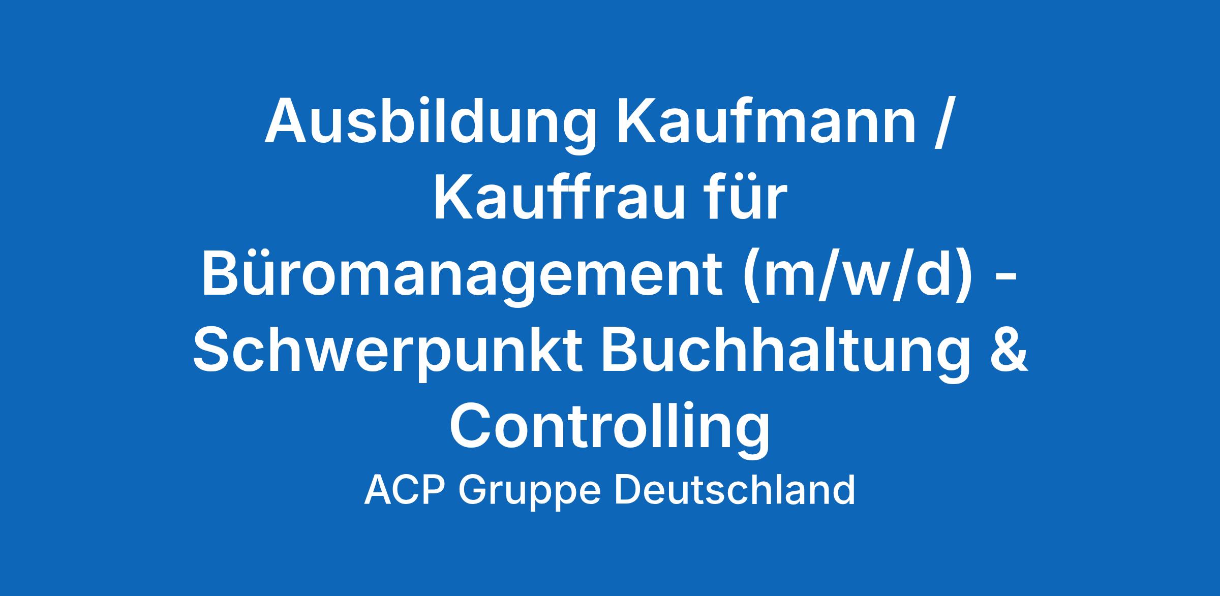 Ausbildung Kaufmann / Kauffrau für Büromanagement (m/w/d) - Schwerpunkt Buchhaltung & Controlling