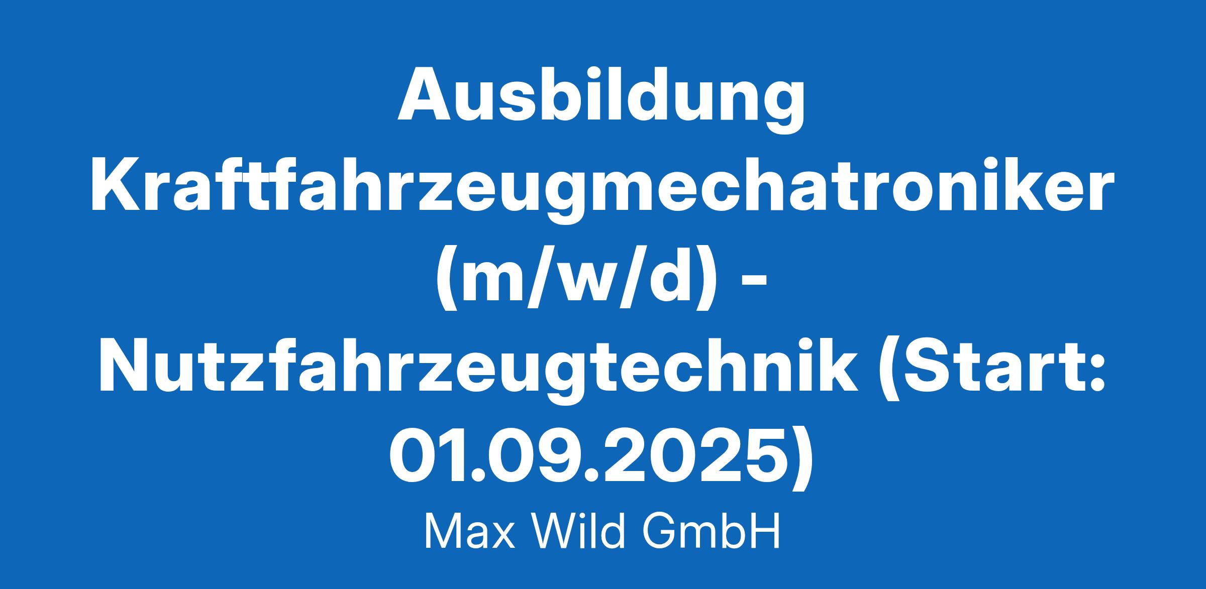 Ausbildung Kraftfahrzeugmechatroniker (m/w/d) - Nutzfahrzeugtechnik (Start: 01.09.2025) in Berkheim vom 23.07.2024 Max Wild - Hochmotivierte und gut ausgebildete Mitarbeiterinnen und Mitarbeiter machen uns zu dem, was wir sind: ein leistungsstarker und zuverlässiger Partner für unsere Kunden in den Bereichen Abbruch, Bau und Transportdienstleistungen. Werde auch du Teil unseres Teams. Ausbildung Kraftfahrzeugmechatroniker (m/w/d) - Nutzfahrzeugtechnik