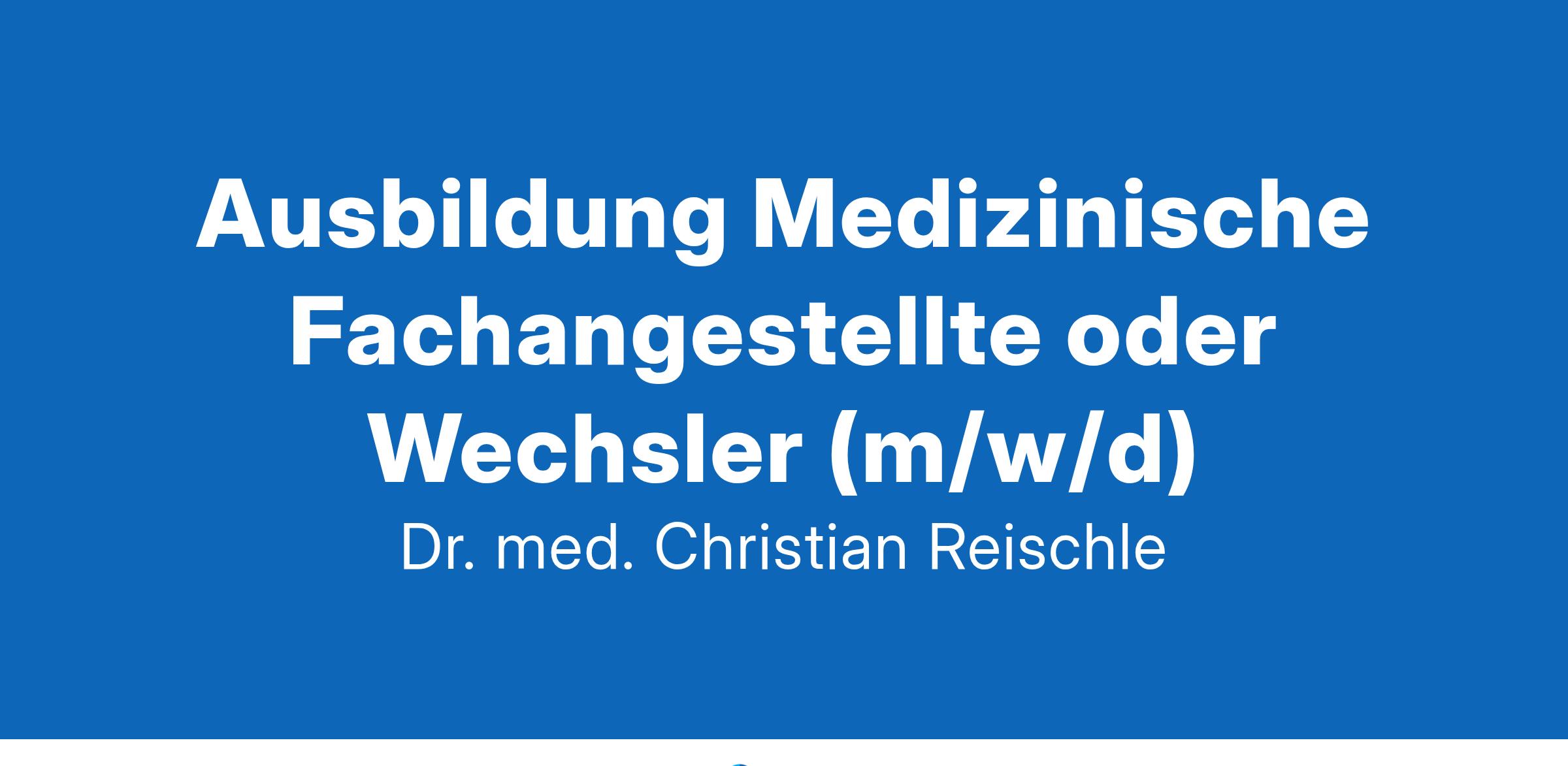 Ausbildung Medizinische Fachangestellte oder Wechsler (m/w/d) Azubi zur MFA oder Wechsler (m/w/d) gesucht Du möchtest neu in die Medizin einsteigen oder hast bereits erste Erfahrungen in einer anderen Praxis gesammelt? Wir sind seit über 100 Jahren als Familien-Hauspraxis für allgemein/internistische Medizin tätig. Neben der umfassenden allgemeinmedizinischen Patientenbetreuung in der Sprechstunde, liegt unser Schwerpunkt in Hausbesuchen unserer Patienten in Altenheimen, zu Hause, und Wohngruppen. Bei uns kannst Du unseren tollen Beruf gründlich und umfassend erlernen, sodass Du schnell weißt, was Du tust, und eigenverantwortlich arbeiten kannst – am Patienten, im Labor und allen anderen Praxisabläufen. Für Deinen Einsatz und gute Mitarbeit wirst Du bei uns zusätzlich entlohnt. Wenn Du neugierig auf uns geworden bist, freuen wir uns über Deine Bewerbung an praxis@dr-reischle.com. Dr. med. Christian Reischle | Einsteinstr. 12 | 81675 München | Tel: 0 89/22 15 87