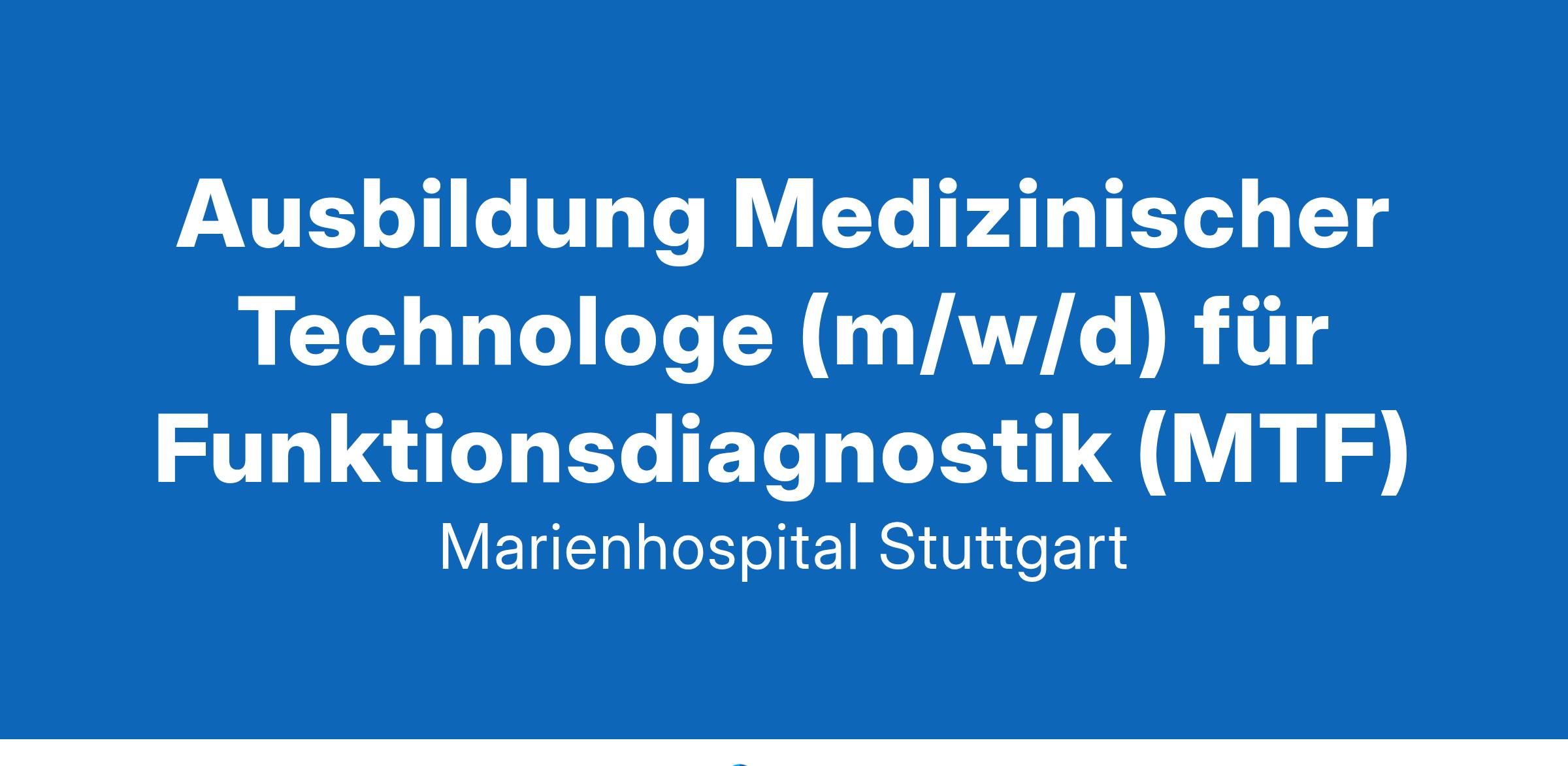 Ausbildung zum Medizinischen Technologen (m/w/d) für Funktionsdiagnostik (MTF) zum 01.09.2025 Wir am Marienhospital Stuttgart stellen die Zuwendung zum Patienten in den Mittelpunkt. Moderne Hightech-Medizin von Menschen für Menschen – das können Sie als Mitarbeiter unseres Teams jeden Tag erleben. Wir bieten in Kooperation mit der Akademie für Gesundheitsberufe des Universitätsklinikums Ulm zwei Ausbildungsplätze für den Ausbildungsbeginn 01.09.2025 an. Die schulische Ausbildung findet in Ulm-Wiblingen statt. Ihre praktischen Einsätze im Marienhospital finden in den Bereichen Neurologie, Kardiologie, HNO, Pneumologie sowie in unserem Schlaflabor statt. Wir freuen uns auf Ihre Bewerbung bis zum 31.03.2025. Das sind Ihre Aufgaben Auf ärztliche Anordnung selbständig Untersuchungen mit Hilfe unterschiedlicher medizinischer Geräte durchführen Patienten während der Untersuchung betreuen und zur Mitarbeit motivieren Untersuchungsverläufe dokumentieren, Untersuchungsergebnisse auswerten, Befunde zusammenstellen Medizingeräte vorbereiten und prüfen Das sind Sie Sie haben eine abgeschlossene mittlere Reife, Fachhochschulreife oder Abitur Besonders interessiert an den Fächern Mathe, Deutsch und Biologie Freundlich im Umgang mit Menschen, einfühlsam, aber auch durchsetzungsfähig und zielstrebig Geschickt, sorgfältig und motiviert selbständig zu arbeiten Unser Angebot Eine interessante, vielseitige und verantwortungsvolle Tätigkeit Gute fachliche und persönliche Betreuung durch unsere fachverantwortlichen Ausbilder und die Praxisanleitungen in den Abteilungen Vernetzungsangebote mit anderen Auszubildenden und Studierenden Eine Tarifvertraglich geregelte Vergütung und Sozialleistungen Günstige Wohnmöglichkeiten, Jobticket und ein betriebliches Gesundheitsmanagement mit vielfältigem Sportangebot und eigenem Schwimmbad Für Fragen stehen wir Ihnen gerne zur Verfügung: Lisa Baumgartl