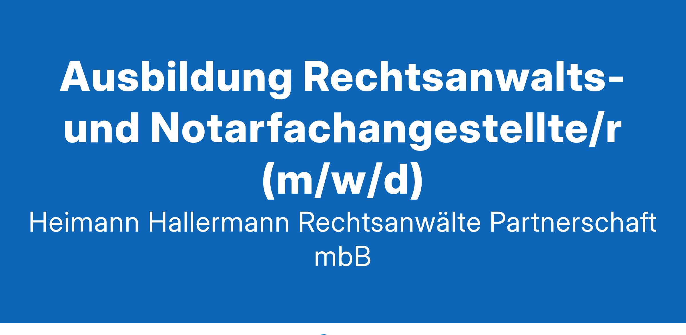 tätige Anwaltssozietät. Für unseren Standort Hamm, der auf eine nahezu 100-jährige Tradition zurückblicken kann und heute eine der führenden Anwaltskanzleien in der Region ist, suchen wir zum 01.08.2025 mehrere motivierte und freundliche Auszubildende (m/w/d) zum/zur Rechtsanwalts- und Notarfachangestellten. Wir bieten eine qualifizierte und abwechslungsreiche Ausbildung in einer modernen, zukunftsorientierten Kanzlei zu guten Konditionen (1000,00 € brutto im 1. Ausbildungsjahr), Urlaubsgeld, Weihnachtsgeld, Mitarbeiterevents und selbstverständlich Kaffee, Tee und Mineralwasser zum freien Verzehr. Wir bieten außerdem eine gute berufliche Perspektive in angenehmer Atmosphäre und einem netten Team. Bei erfolgreich abgeschlossener Ausbildung bestehen gute Übernahmechancen. Wenn Sie einen guten mittleren Schulabschluss, die Fachhochschul- oder Hochschulreife oder einen entsprechenden Schulabschluss erreicht haben oder erreichen werden die deutsche Sprache sicher in Wort und Schrift beherrschen Organisationstalent, Teamgeist und sorgfältiges Arbeiten zu Ihren Stärken zählen und Sie Spaß und Interesse an den Arbeiten in einer Anwaltskanzlei haben, dann freuen wir uns sehr auf Ihre aussagekräftige Bewerbung mit Lebenslauf und Zeugnissen. Heimann Hallermann Rechtsanwälte Partnerschaft mbB