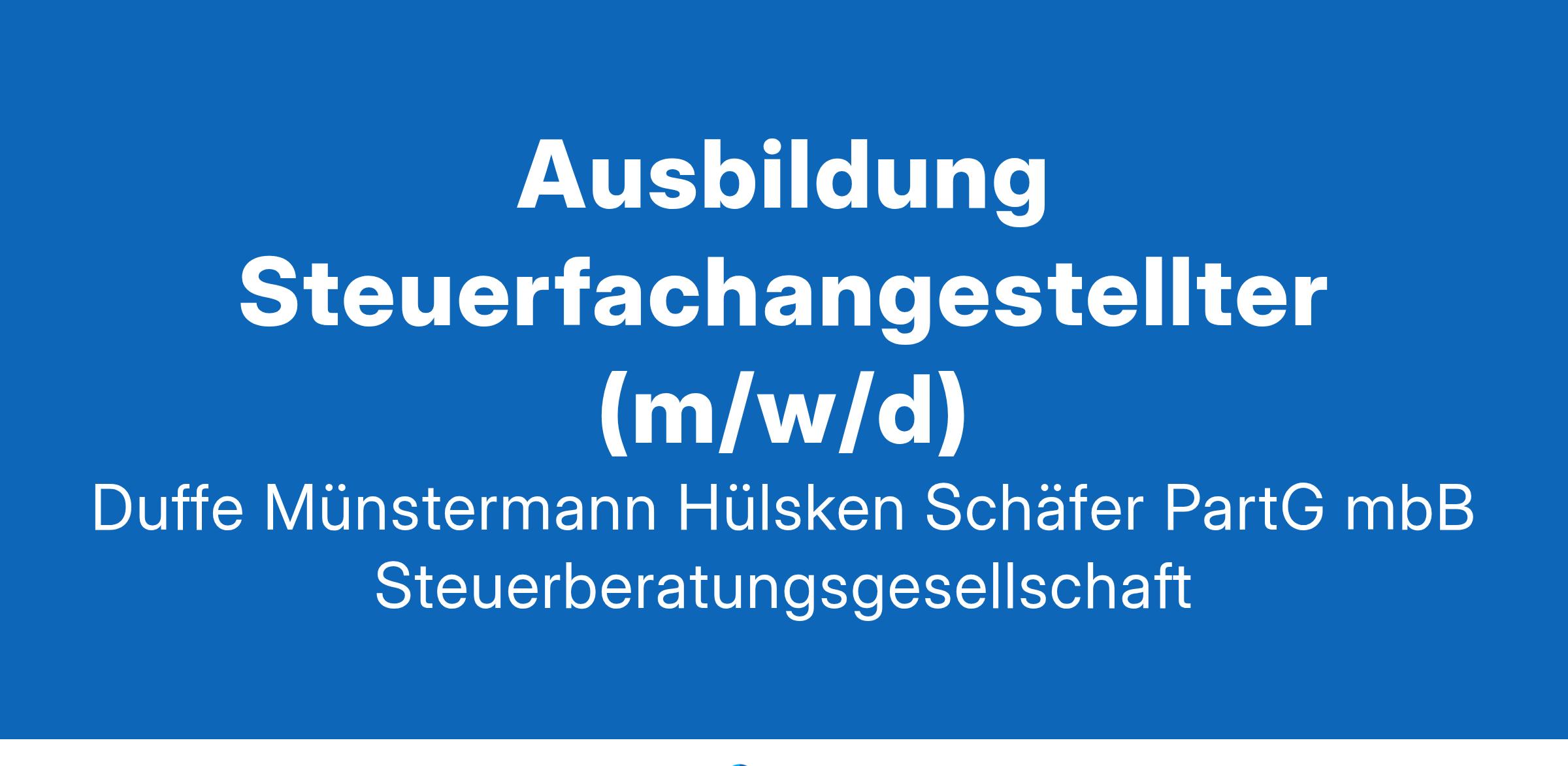 Ausbildung Steuerfachangestellter (m/w/d) 1. August 2025 Komm in unser Team und mache Deine Ausbildung als Steuerfachangestellte/r (m/w/d) Wir freuen uns auf Dich!