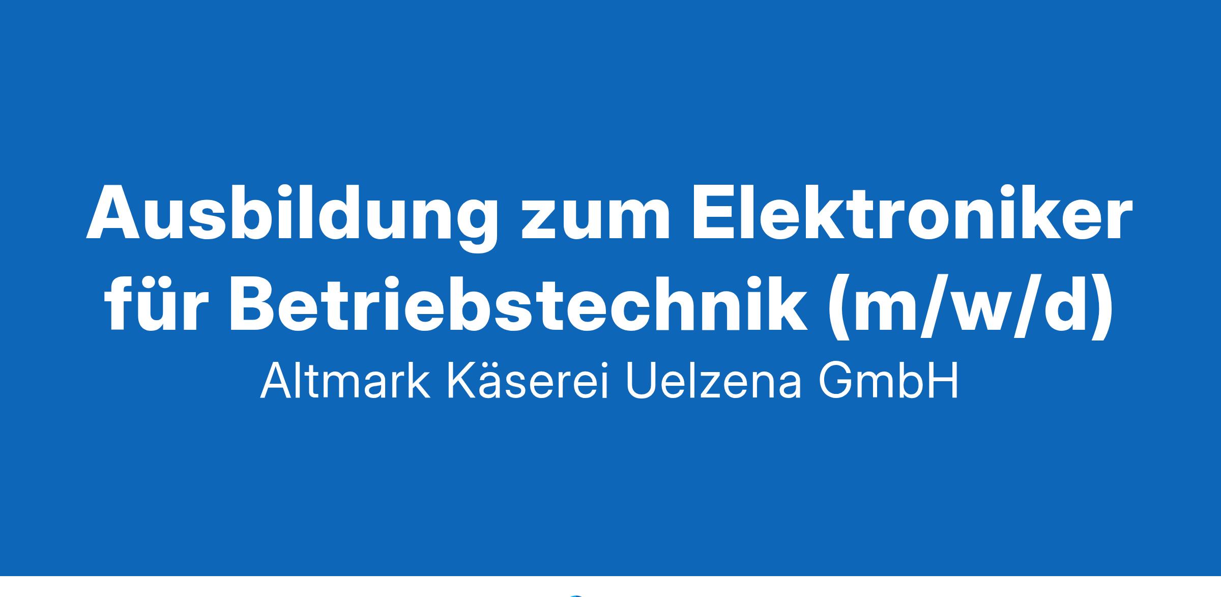 Ausbildung zum Elektroniker für Betriebstechnik (m/w/d) Die Altmark-Käserei ist ein moderner Industriebetrieb mit innovativer Technik, einer breiten Produktpalette und einem starken Team von Mitarbeiterinnen und Mitarbeitern. AUSBILDUNGSBERUFE (M/W/D)