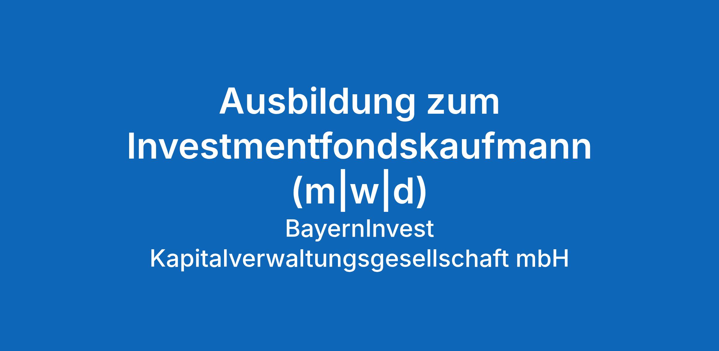Du stehst kurz vor Deinem Schulabschluss und interessierst Dich für Kapitalmärkte? Dann starte mit einer 2,5-jährigen Ausbildung bei BayernInvest in Deine berufliche Zukunft. Seit über 35 Jahren entwickeln wir professionelle Lösungen im Investment Management und zählen zu den führenden Kapitalverwaltungsgesellschaften in Deutschland. Bei uns lernst Du Schritt für Schritt, wie Kapitalmärkte funktionieren – mit einem klaren Fokus auf Rentenfonds (Fixed Income) und Infrastrukturinvestments. Zukunftsfähige Lösungen und Nachhaltigkeitsaspekte sind dabei integraler Bestandteil unseres Investmentprozesses.