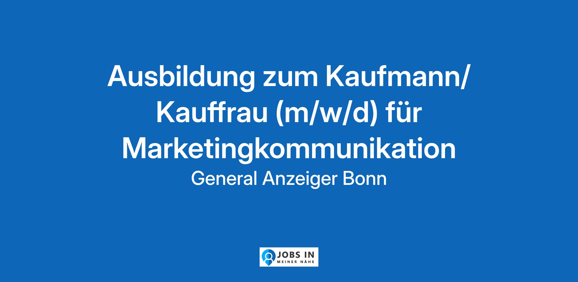 Wir suchen Dich zum 1. August 2026 für die Ausbildung zum Kaufmann/ Kauffrau (m/w/d) für Marketingkommunikation Der General-Anzeiger Bonn ist ein modernes, in der Region fest verankertes und vielfach preisgekröntes Medienunternehmen in der Bundesstadt Bonn. Wir sind Teil der Rheinische Post Medie... Sozialkompetent;Kundenorientiert;Produktionsprozesse;Marketing-Aktionen;Kundendienst;Auswertung;Selbstbewusstsein;Marktforschung;Buchhaltung;Werbemittel;Produktmanagement Original Stellenanzeige auf StepStone.de – Jetzt Jobagent bei StepStone einrichten und Traumjob finden! https://bit.ly/2KOagYD Mehr Informationen zu Arbeitgebern, Gehaltsdaten und Karrieretipps finden Sie auf StepStone.de