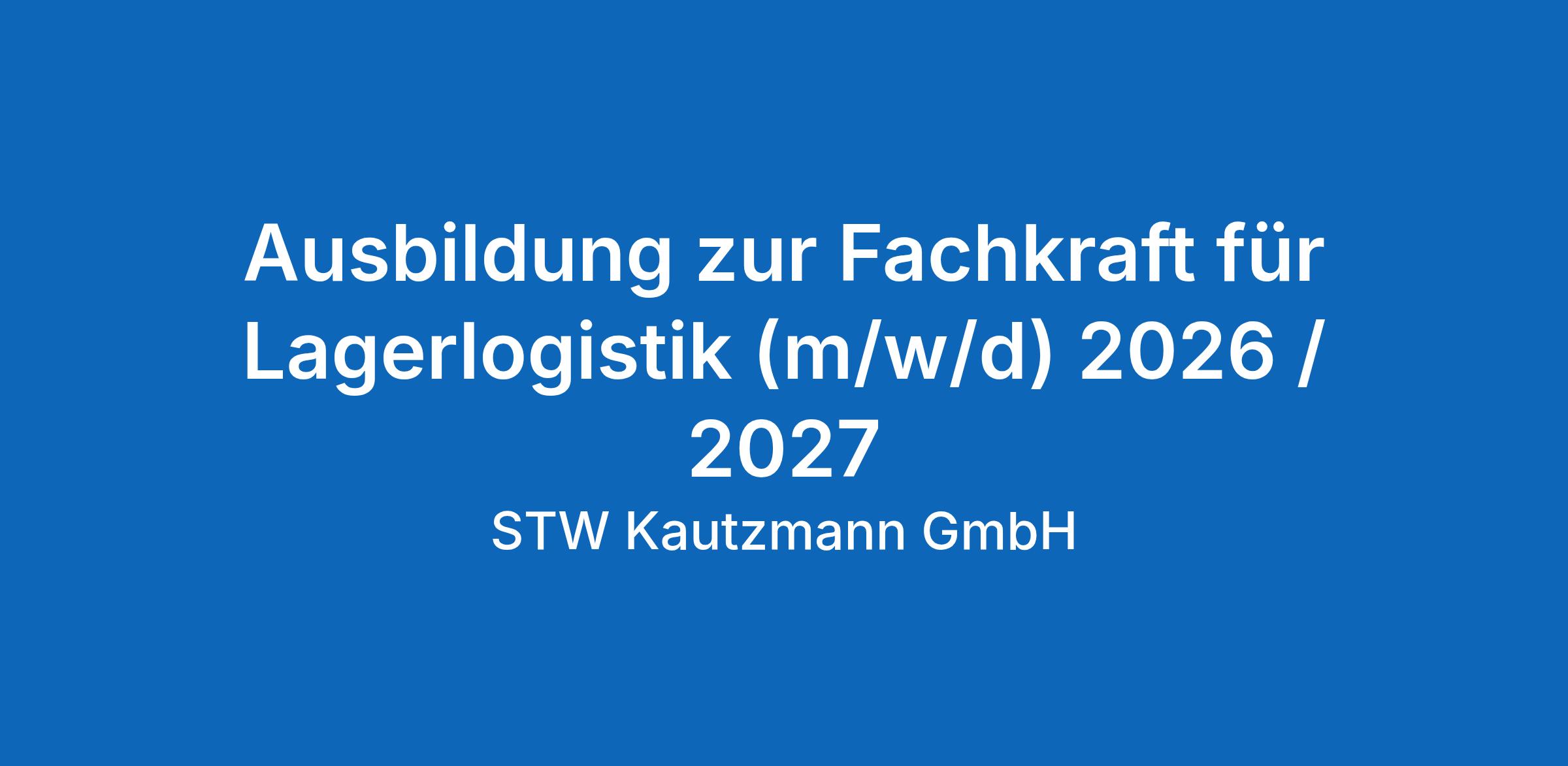 AUSBILDUNG ZUR FACHKRAFT FÜR LAGERLOGISTIK (M/W/D)