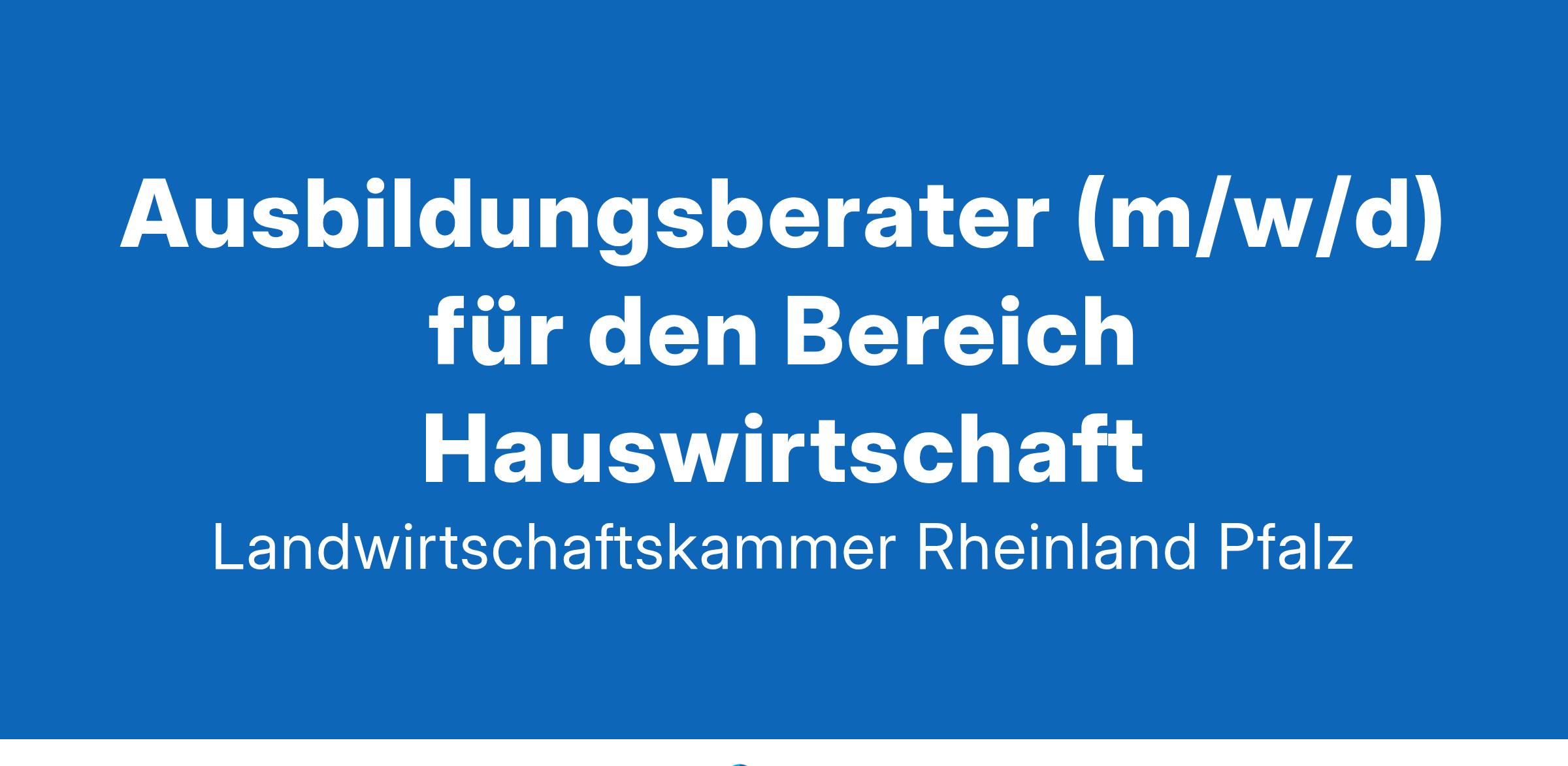 Die Landwirtschaftskammer Rheinland-Pfalz – Körperschaft des öffentlichen Rechts – sucht für die Zentrale Bad Kreuznach oder die Standorte Alzey, Bekond oder Koblenz zum nächstmöglichen Zeitpunkt eine/nAusbildungsberater/in (m/w/d) für den Bereich HauswirtschaftDas Aufgabengebiet umfasst im Wesentlichen:die Beratung und Betreuung der Auszubildenden und Ausbildungsbetriebe in der Hauswirtschaft. Als zuständige Stelle nach dem Berufsbildungsgesetz fallen in diesen Aufgabenbereich ferner die Planung und Durchführung von Zwischen- und Abschlussprüfungen sowie die Organisation der überbetrieblichen Ausbildung.Weitere Aufgabengebiete sind die Organisation und Durchführung von Vorbereitungslehrgängen auf Prüfungen in der hauswirtschaftlichen Berufsbildung mit eigener Lehrtätigkeit.Von den Bewerberinnen und Bewerbern erwarten wir:Einen Hochschulabschluss (erster berufsqualifizierender Abschluss = Bachelor/Diplom FH) im Bereich Oecotrophologie oder einen Abschluss als Meister/in in der Hauswirtschaft oder einen Abschluss als hauswirtschaftliche/r Betriebsleiter/in mit mehrjähriger Berufserfahrung oder einen vergleichbaren für die Ausübung der Tätigkeit geeigneten AbschlussFlexibilität, Mobilität und EinsatzbereitschaftOrganisationsfähigkeit, Kommunikationsfähigkeit sowie lösungsorientiertes Arbeiten, die Bereitschaft zur Teamarbeit und die Zusammenarbeit mit haupt- und ehrenamtlichen PartnernEin sicheres und freundliches Auftreten sowie eine gute mündliche und schriftliche AusdrucksweiseEinen Führerschein Klasse B, die Wahrnehmung von Außendiensttätigkeiten sowie die Bereitschaft zum Einsatz eines eigenen PKW für dienstliche Zwecke (Erstattung erfolgt nach dem geltenden Landesreisekostengesetz)Kenntnisse der Berufs- und Arbeitspädagogik sind erwünschtDas bieten wir:Flexible Arbeitszeitgestaltung zur Vereinbarkeit von Beruf und FamilieDie Möglichkeit zur tageweisen Arbeit im HomeofficeUmfangreiche Sozialleistungen (z.B. Jahressonderzahlung, Betriebliche Altersvorsorge)Fort- und WeiterbildungsmöglichkeitenEin engagiertes Team, das sich auf Sie freutHinweise:Es handelt sich um eine unbefristete Beschäftigung in Vollzeit. Die Einstellung erfolgt im Beschäftigungsverhältnis nach den Bestimmungen des Tarifvertrages für den öffentlichen Dienst der Länder (TV-L). Je nach Erfüllen der persönlichen und tariflichen Voraussetzungen ist eine Eingruppierung in Entgeltgruppe 9 oder 10 TV-L möglich.