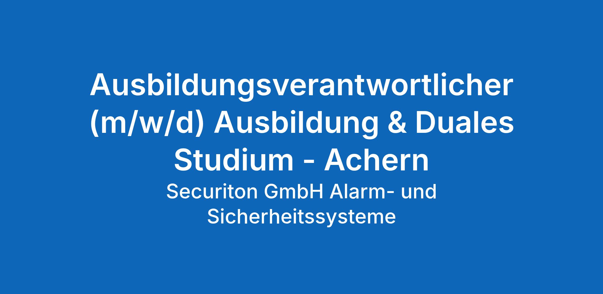 Ausbildungsverantwortlicher (m/w/d) Ausbildung & Duales Studium – Achern