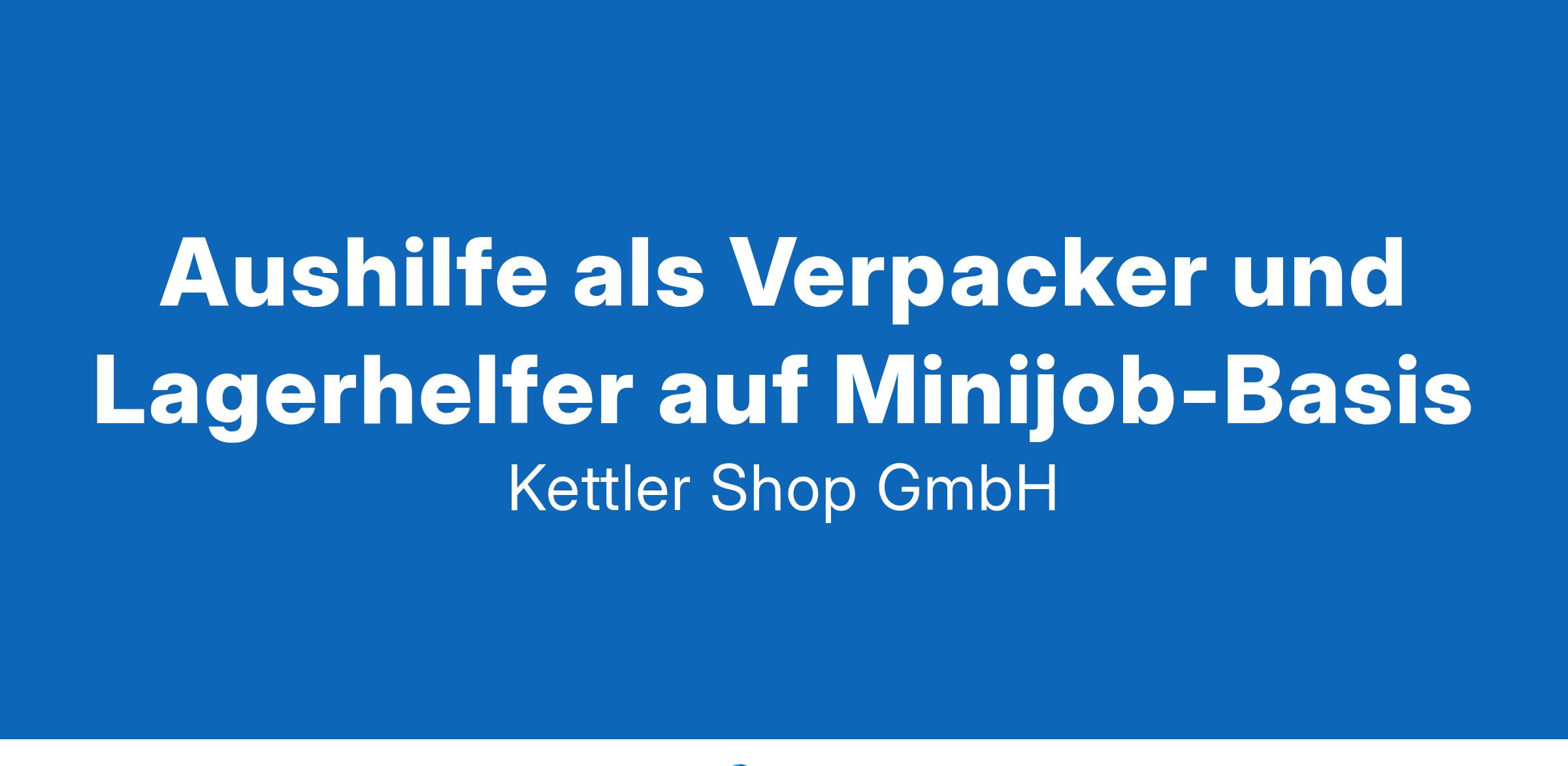 Aushilfe als Verpacker und Lagerhelfer auf Minijob-Basis Aushilfe als Verpacker und Lagerhelfer auf Minijob-Basis gesucht ab 01.02.2025 in Ense Standort Ense (Kreis Soest) Minijob ~10 Stunden die Woche Die Kettler Shop GmbH ist ein junges Unternehmen, welches Textilprodukte im E-Commerce vertreibt. Für unseren Onlinehandel suchen wir tatkräftige Unterstützung im Lager und Versand in Ense. Arbeitszeiten: 2 - 5 Tage / pro Woche, 2 - 4 Std. / Tag, vorrangig vormittags. Ihre Aufgaben: Vorbereiten der Ware für den Versand Warenannahme, Wareneingangskontrolle mit Qualitätsprüfung Packen von Paketen sowie Auspacken und Bearbeiten von retournierten Artikeln Etikettieren und Konfektionieren von Waren Bestellungen überprüfen Allgemeine Aufgaben im Lager und im Versand Arbeitszeiten: Mo. - Fr., im Zeitrahmen 7:00 - 16:00 Uhr, jeweils nach Bedarf Ihr Profil: Erfahrung im Lagerbereich wünschenswert Selbständige Arbeitsweise Grundkenntnisse EDV (Word und Excel) Teamfähigkeit Zuverlässigkeit Das bieten wir Ihnen: Vergütung 556,00 € (Minijob) Fundierte Einarbeitung an unserem Standort 59469 Ense mit festem Ansprechpartner Krisensicherer Arbeitsplatz Mitarbeit in einem motivierten Team mit flacher Hierarchie Abwechslungsreiche Tätigkeit Modernes Arbeitsumfeld und kostenfreie Parkplätze Einkaufsmöglichkeiten fußläufig erreichbar Sie haben Interesse an unserer Stelle? Dann freuen wir uns auf Ihre Bewerbung! Meden Sie sich jetzt per E-Mail mit Ihren Bewerbungsunterlagen (Anschreiben und Lebenslauf), sowie Ihres frühestmöglichen Eintrittstermins. Ansprechpartner: Kettler Shop GmbH